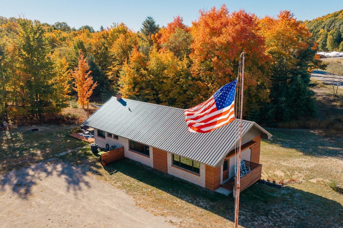 Welkom bij Exodus, een nieuw gebouwde A-woning op 20 afgelegen hectare in het hart van Empire. Ontsnap aan de realiteit met kilometerslange wandelpaden, ontspan in het bubbelbad voor zeven personen of geniet van het schilderachtige landschap vanaf het balkon van de slaapkamer. Ondanks dat het de ideale rustige schuilplaats is, ben je alleen: 5 minuten naar Empire Beach Vijf minuten naar Sleeping Bear Dunes 10 minuten naar Glen Arbor 20 minuten naar Traverse City 30 minuten naar Crystal Mountain