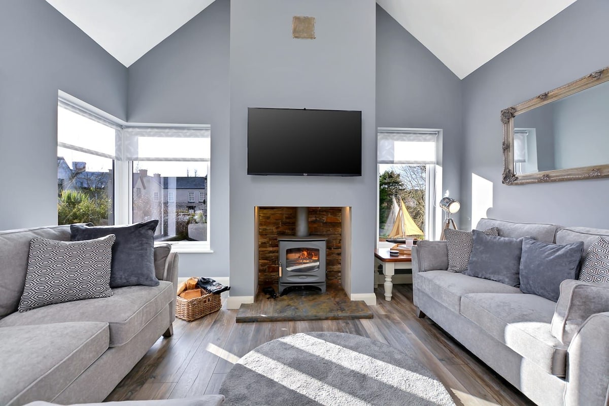 Word wakker met vogelgezang en konijntjes in deze warme luxe boslodge met drie slaapkamers in lakens met een hoge draaddichtheid. Genesteld in bomen gebruik Forest Meditation Trail, speel 's werelds snelst groeiende sportpadeltennis op dit landgoed, op slechts een mijl van Armagh. Gratis WIFI. Twee boomhutten, honden en pony 's om te aaien. Onze gasten zijn zo koel om dit geweldige huis te verlaten. BBQ in de zomer. Steek het houtvuur aan, doe je voeten omhoog en lees boeken uit onze privébibliotheek.