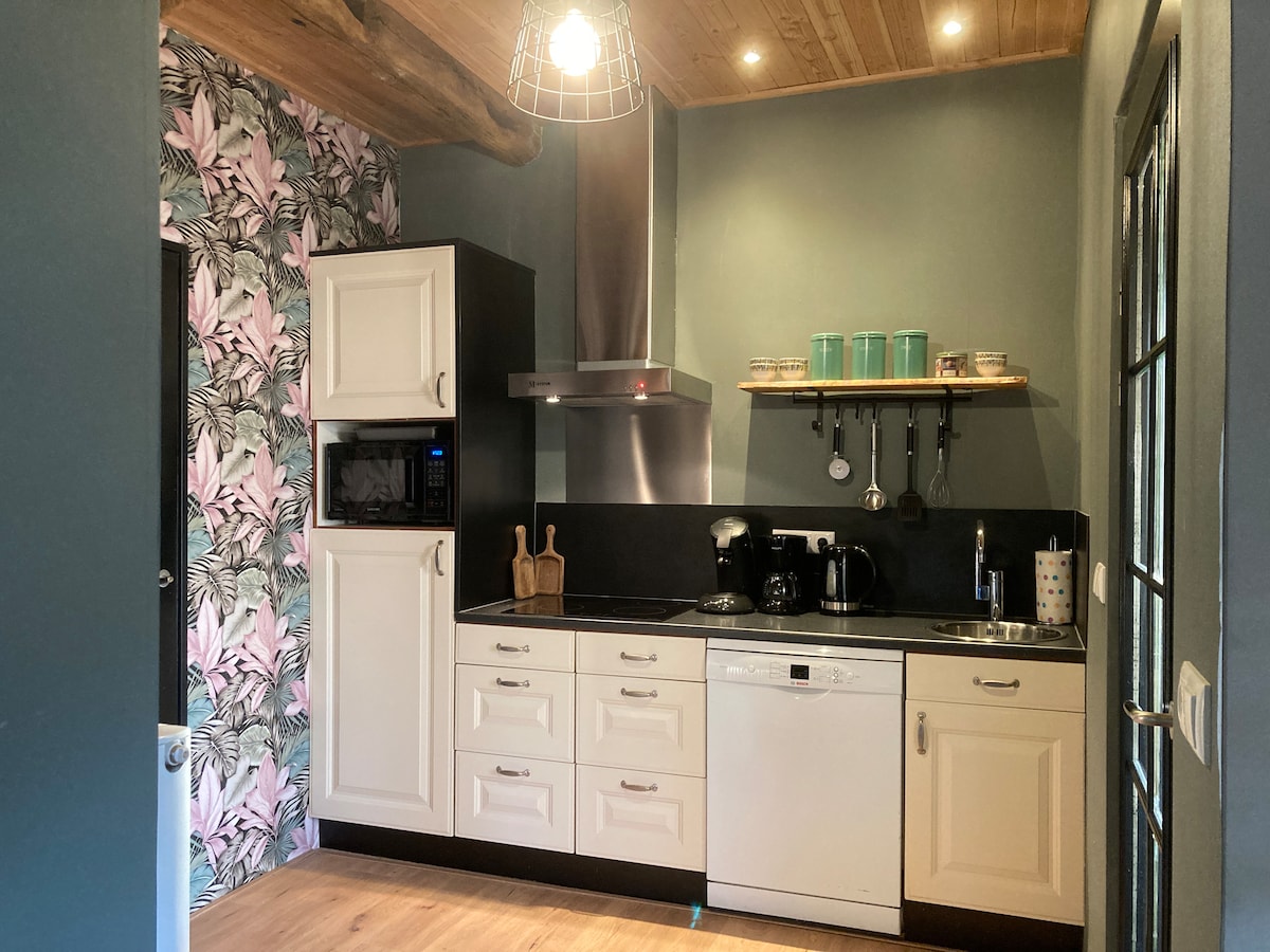 Ons sfeervolle tweepersoons appartement is ruim 42 m2. De woonkamer en keuken ineen biedt u voldoende om te ontspannen en uw eigen ontbijt, lunch of diner te maken. De badkamer is voorzien van een wastafel, toilet en douchegelegenheid. De slaapkamer beschikt over een tweepersoonsbed (140x200) en een kledingkast. U kunt gebruik maken van het privéterras. U mag desgewenst uw auto achter de boerderij parkeren en uw e-bike op het terras opladen (extra verlengsnoer ligt in de hal).