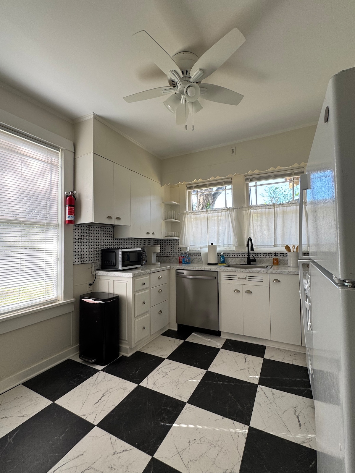 Beautifully renovated, well furnished classical 1600 sq ft Midtown house set between Overton Square & Cooper Young. Close to all the fun and amenities of Midtown Memphis! Two large bedrooms, two full bathrooms, fully equipped eat-in kitchen, plus large dining room, two reception rooms, space for working. Lots of cosy areas to relax and hang out - you can be together or have your private space. Front porch with swing, fenced yard & deck for outside dining. Lots of light and comfort!