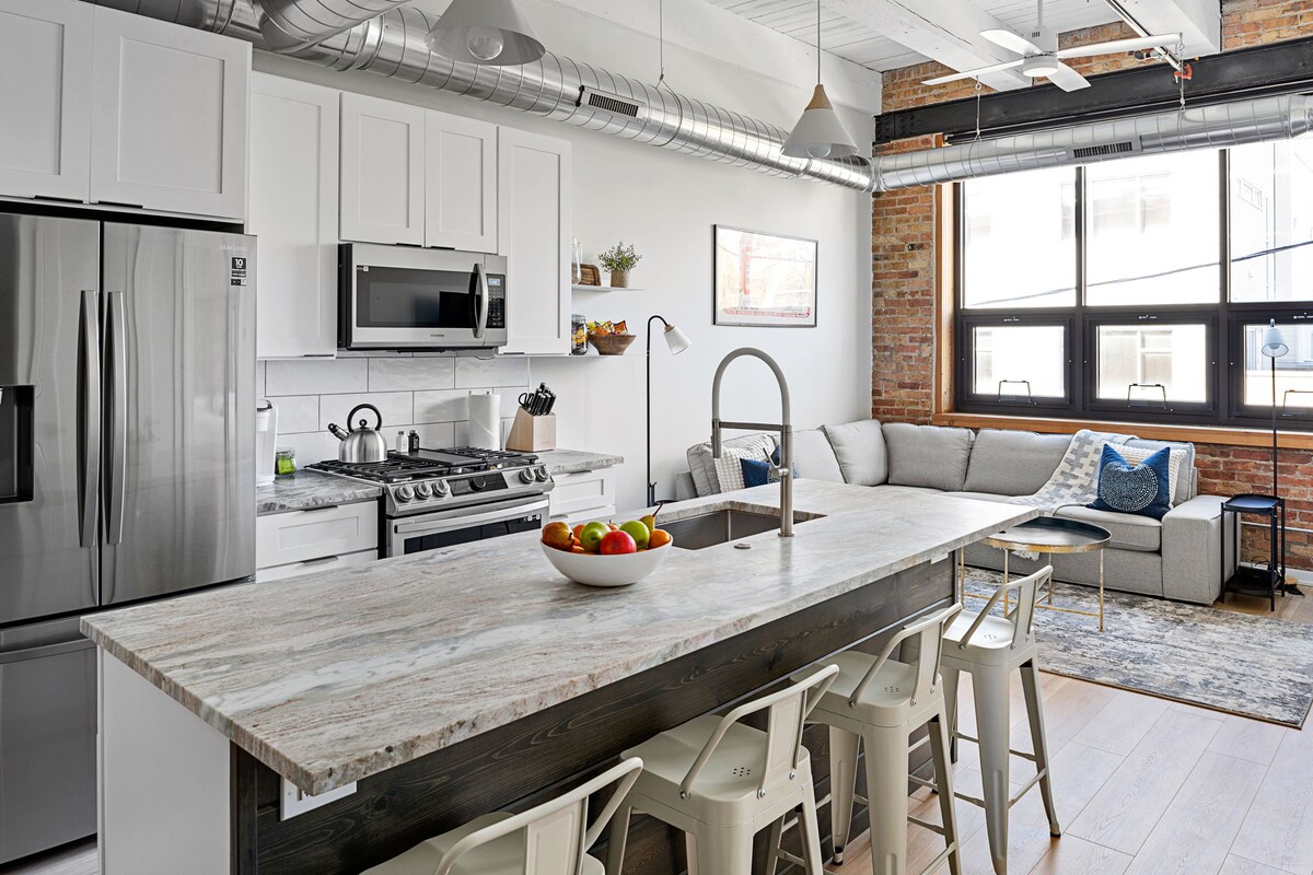 Feel at Home, Unwind, and Enjoy the amenities you deserve right next to Grant Park! Guests love staying with us because: -Central Location near public transit (no car needed!) -FAST WIFI -En-suite Laundry -Lake & Park are outside our front door -Comfy Queen beds -1 Closed & 1 Loft style bedroom -Shared Rooftop Deck with stunning views -Gym -3 blocks from Red "L" subway -Close to Grant Park, The Bean, Soldier Field, Museums If you're interested in booking, see our FAQs below.