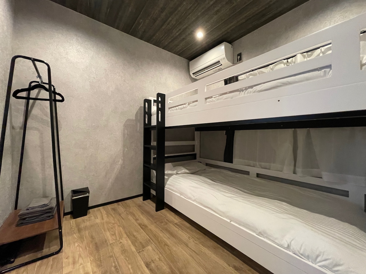 Het is een nieuw hostel dat in februari 2022 is geopend en op 1 minuut lopen van station Kawaguchiko naar het meer.De kamer die je gebruikt is volledig privé met een slot.Er is een stijlvol Japans restaurant op de eerste verdieping en gasten kunnen er tegen een gereduceerde prijs gebruik van maken.Er zijn veel supermarkten en restaurants in de buurt, en er zijn veel gratis bussen naar Fuji-Q Highland en Fujiyama Onsen vanaf station Kawaguchiko, op 1 minuut lopen van station Kawaguchiko en vele bussen naar bezienswaardigheden zoals Oishi Park en ijsgaten.De hostelkamer is uitgerust met een tafel en stoelen voor 2 andere personen met een stapelbed, een waterkoker en een doucheruimte, toilet en muntwas in de gemeenschappelijke ruimte.Het is net gerenoveerd, dus het interieur en de faciliteiten zijn allemaal nieuw en schoon.De faciliteit maakt gebruik van hoogwaardige matrassen gemaakt door Simmons en ook gebruikt in hotels.Voel je vrij om die comfortabel te gebruiken.Beddengoed wordt elke keer schoongemaakt, net als een hotel.Het is een zeer gunstige locatie voor sightseeing in Lake Kawaguchiko, dus aarzel niet om het te gebruiken.