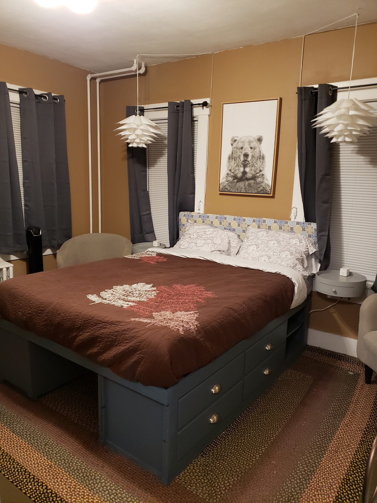 Dit is een kamer met een queensize bed en een driekwart badkamer. Ontbijthoek, minikoelkast, magnetron, koffiezetapparaat. Deze kamer heeft een eigen ingang, een eigen badkamer en een eigen patio (patio is niet open in de winter). Ook hebben we parkeergelegenheid op straat voor één of twee auto 's. Ik ben nieuw met verhuren, dus voor nu graag een maximum van twee personen. Op loopafstand van het centrum. Minder dan 100 meter en je zit midden in het centrum van Meredith.