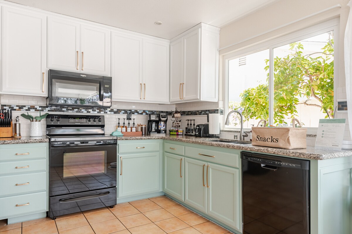 Ons prachtige huis is gelegen in het hart van San Diego. Vanuit de voordeur van de woonkamer zie je door naar de keuken, familiekamer en rechtstreeks in de brede achtertuin met een putting green. Perfect voor familiebijeenkomsten. De keuken is van alle gemakken voorzien. - Thermador fornuis, afzuigkap, magnetron, oven en breed eiland Achtertuin perfect voor een bijeenkomst: Veilig en schoon voor de kinderen om rond te rennen. Heeft een putting green, vuurplaats en meerdere loungeruimtes.