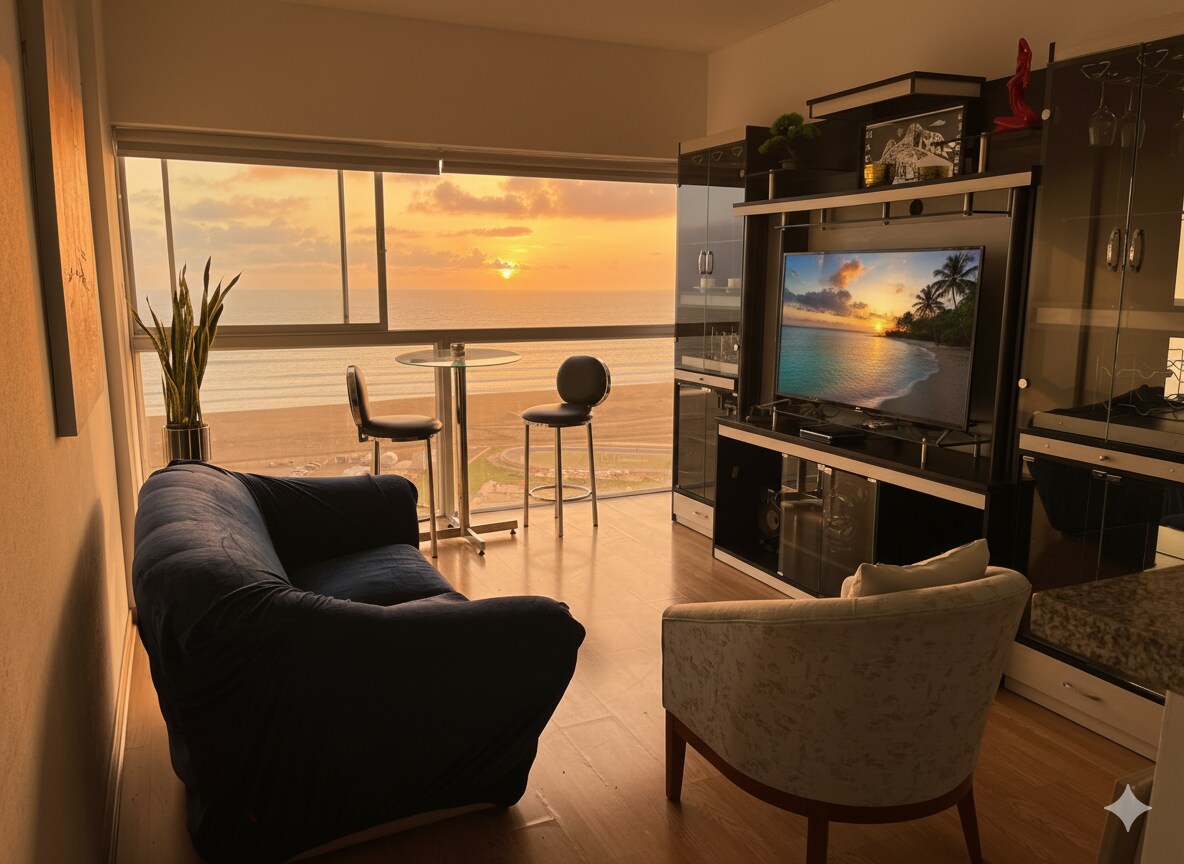 De afdeling ligt dicht bij de luchthaven en op 15 minuten van Miraflores bij het strandcircuit,je kunt genieten van een uitzicht op de oceaan vanuit alle omgevingen ,we hebben een pendeldienst en we hebben 24/7 ondersteuning voor gasten. . Het appartement is volledig uitgerust , snel warm water, wifi , 2 55 inch tv’s en heeft een panoramisch zwembad op de bovenste verdieping , evenals sauna en fitnessruimte .