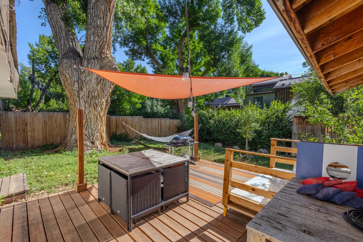 Verscholen naast de uitlopers in de buurt van de Cache La Poudre River. Loop naar het rivierpad, supermarkt, bakkerij, pizzatent, populair Swing Station, frisbee golfbaan of de trouwlocatie Tapestry House - dit is de plek! Perfecte locatie om op het geplaveide rivierpad te springen met een fiets- en brouwerijhop in Fort Collins, Lory State Park te verkennen, de Poudre-rivier te raften, te drijven in Horsetooth Reservoir en rotsklimmen in de canyon. Het is een rustige plek direct buiten Fort Collins.