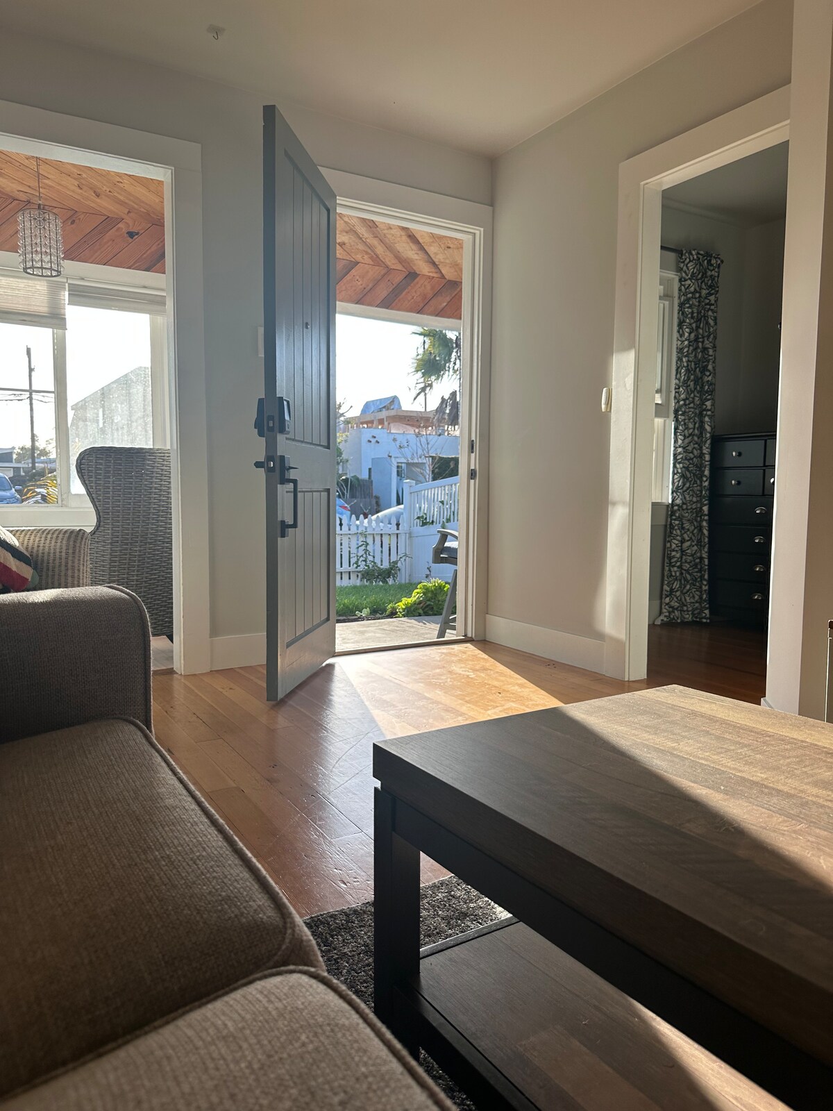 Onlangs gerenoveerd 1940 huisje op slechts 50 stappen naar het zand met een prachtig uitzicht op het strand en de oceaan. Geniet van de oceaanbries vanaf je veranda en zie mensen voorbij lopen. Ga zonnebaden en zwemmen, maak een fietstocht of een wandeling op het strand, drink een glas wijn en zie de mooiste zonsondergangen. We liggen in een rustige woonwijk van Ocean Beach. Dit lichte en gezellige huisje heeft alles wat je nodig hebt om je thuis te voelen.