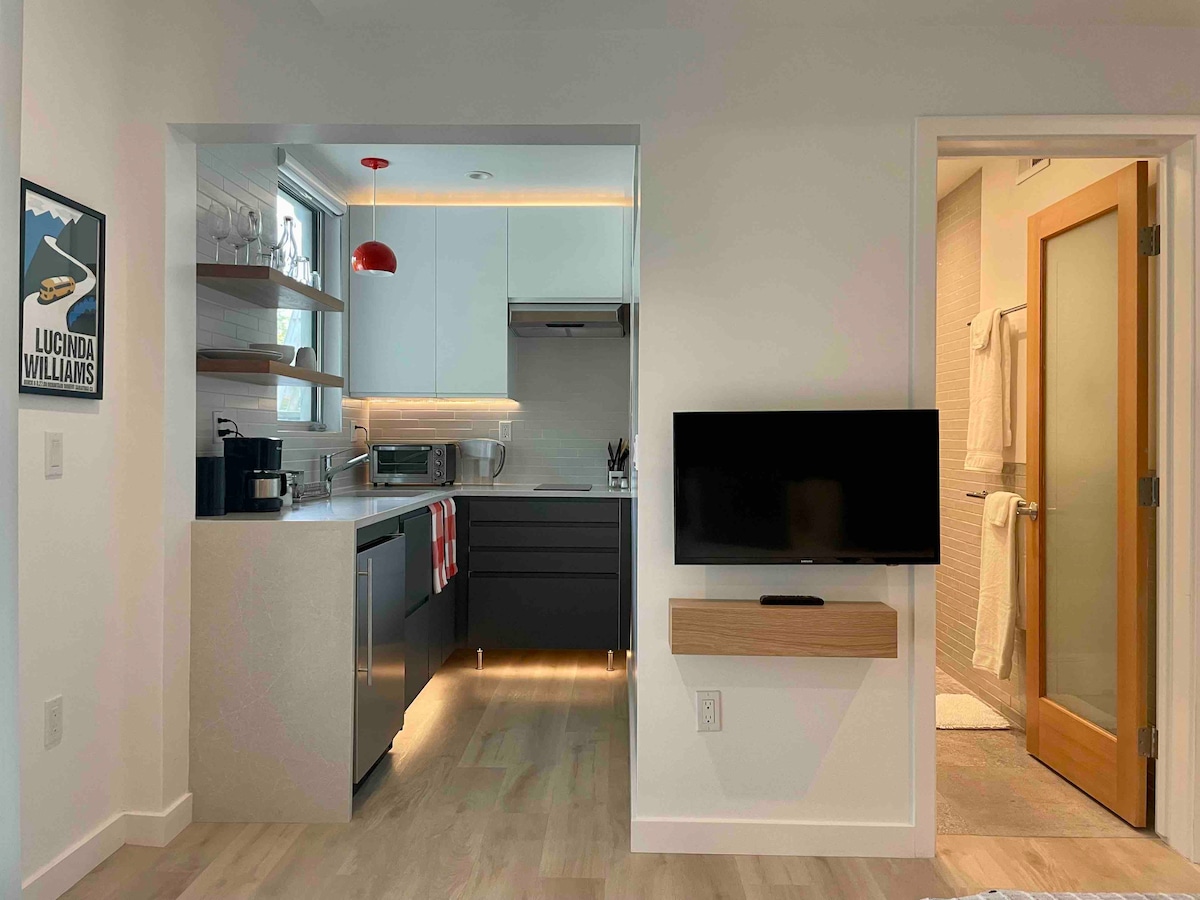 Moderne suite met aparte ingang, luxe badkamer en eigen buitenruimte – allemaal op een korte wandeling van het beste eten, bars en winkels van de Mission! Tot de voorzieningen van de kamer behoren een minikoelkast, koffie- en theefaciliteiten, een Bose-luidspreker, een bureau + grote monitor, een 49-inch tv en een kingsize bed met biologisch matras. Badkamer met een groot bad, inloopdouche en luxe handdoeken en beddengoed. De rustige buitenruimte is een heerlijke omgeving voor een drankje in de middag of een hapje eten...een echte stedelijke oase op de beste locatie van SF!