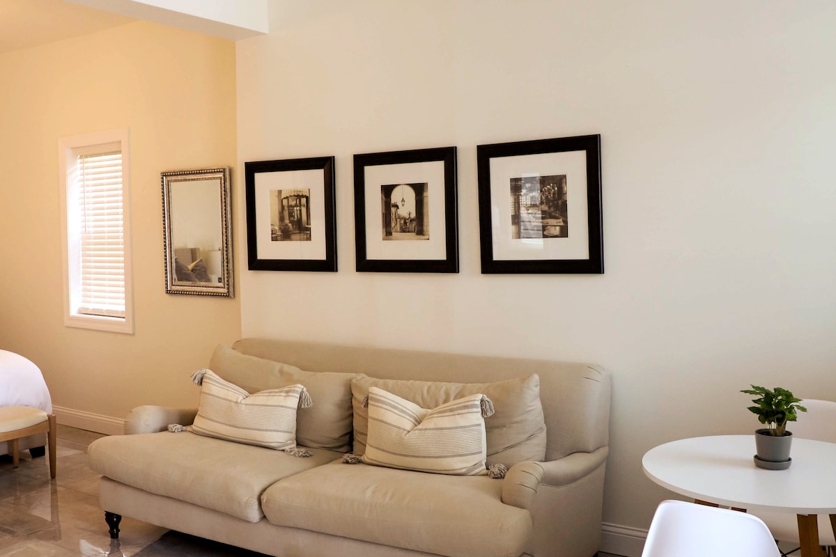 Mindful gerenoveerde gezellige bungalow met een weelderige levendige aangelegde tuin, kronkelende bakstenen patio en terras met uitzicht op watervalvijver met koivissen. We hebben onze efficiënte ruimte liefdevol gerestaureerd met een mix van oude en nieuwe meubels en vernieuwde apparaten. Een romantische luxe sfeer ❤️ Het perfecte nest voor twee! Onze rustige veilige buurt is de thuisbasis van fantastische restaurants, bars, koffiehuizen en galeries. Dicht bij alles, waaronder Hwys 40, 44, 55. PLUS veilige privéparkeerplaats