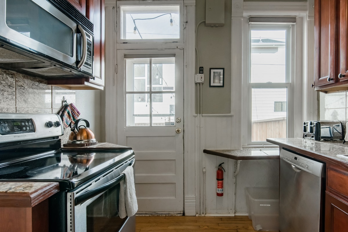Proef Victoriaans Denver in een woonkamer met bewaard gebleven bakstenen muren, gebrandschilderd glas en hoge ramen die veel licht geven. De kamers hebben hoge plafonds in dit herenhuis en zijn verbonden met gerestaureerde hardhouten vloeren en origineel molenwerk. Vergunning stad Denver # 2018-BFN-0004619 Hoge plafonds, zichtbare bakstenen muren, decoratieve plinten en andere elementen maken deze originele Victoriaanse stadswoning een zeldzaam juweeltje in een onlangs herontwikkelde buurt. De woning is op een split level met de woonkamer, eetkamer en keuken beneden en de slaapkamers, kantoor en badkamer boven. (Houd er rekening mee dat gasten met kinderen extra voorzorgsmaatregelen moeten nemen met de hardhouten trap). Er stroomt veel natuurlijk licht door grote ramen en een patio is beschikbaar om aan de achterkant te loungen. Er is een 55" tv in de woonkamer en een 42" tv in de hoofdslaapkamer. Granieten aanrechtbladen en roestvrijstalen apparaten sieren de keuken. Gasten hebben toegang tot alle ruimtes om de buitenschuur en de mechanische kamer te accepteren. Gasten kunnen altijd contact met me opnemen voor huisgerelateerde vragen of aanbevelingen over eetgelegenheden of lokale activiteiten. Ik ben bereikbaar per telefoon, sms of e-mail. Het herenhuis ligt in LoHi (Lower Highlands), een populaire buurt vanwege de nabijheid van bekroonde restaurants, brouwerijen en boetieks. Downtown Denver, Union Station en Coors Field liggen net voorbij de Highlands loopbrug. Bijna alles wat je nodig hebt is een wandeling van 10-15 minuten. Elektrische scooterverhuur is overal in de omgeving op grote schaal beschikbaar. En niet te vergeten leuk, snel en betaalbaar! Anders stopt er een bus aan de overkant van de straat en zijn Uber-/Lyft-chauffeurs altijd in de buurt. Vroeg inchecken / laat uitchecken is alleen mogelijk op speciaal verzoek en vereist een toeslag van $ 25.