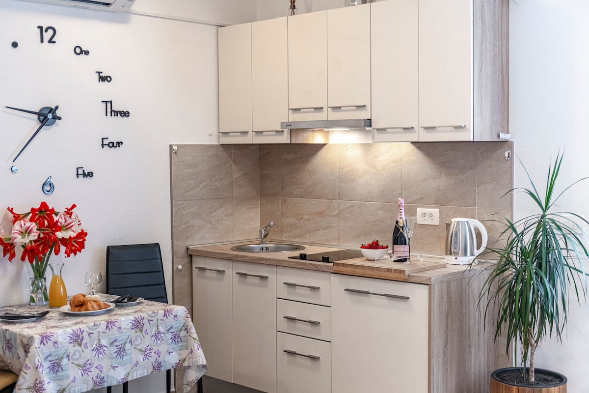 Ons appartement is een gezellig studio-appartement van 25 m². Appartement heeft 1 slaapkamer met 1 tweepersoonsbed die eigenlijk twee eenpersoonsbedden naast elkaar liggen. Kleine keuken (2 kookplaten) met eettafel. Badkamer met douche/ en-suite/toilet. Zeer groot PRIVÉTERRAS (100 m ²) speciaal voor jou gereserveerd, met een spectaculair uitzicht op de zee, de oude stad, het eiland Lokrum. Voor gasten die met een auto aankomen, is parkeren gratis inbegrepen op onze privéparkeerplaats.