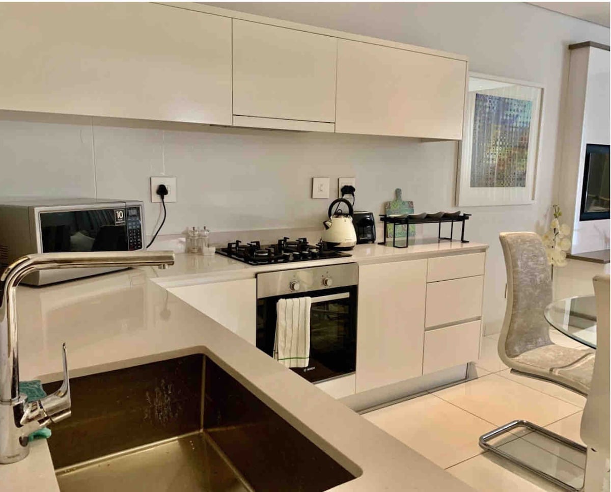 Modern, volledig ingericht, veilig en rustig executive appartement in het hartje Melrose Arch. Het is de perfecte stedentrip en is geschikt voor zowel vakantie als zakenreizen. Onbeperkt glasvezelinternet, veilige en rustige omgeving, automatische omvormer, een 82inch tv (lounge) en een 37inch tv (slaapkamer), beide slim. Gunstig gelegen in het winkelgebied Melrose Arch met toegang tot alle winkels en restaurants. Back-up generator in het gebouw, veilig en beveiligd parkeren met 24-uursbeveiliging 😊