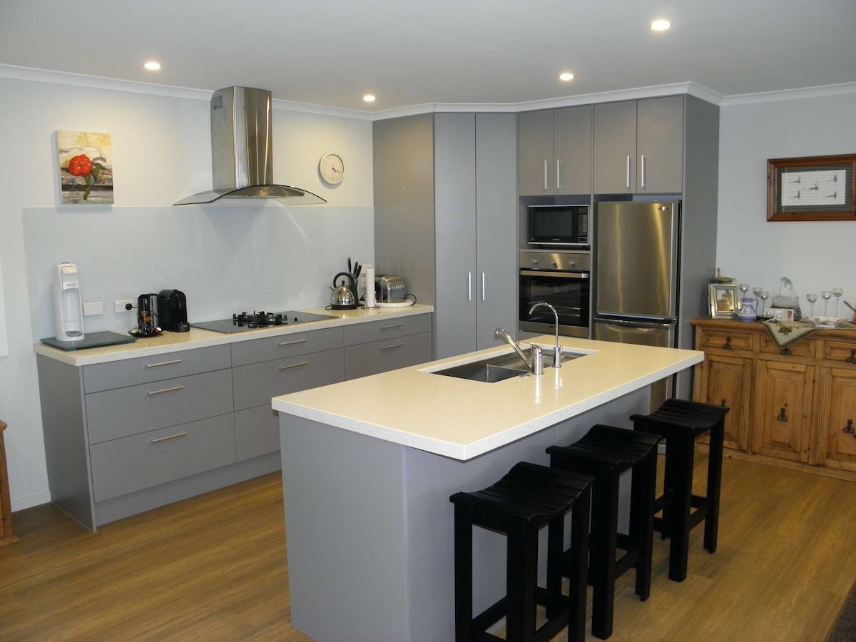 Dit ruime huisje met 2 slaapkamers is van alle gemakken voorzien. Fantastisch uitzicht op de bergen velden met dit jaar langs hectaren zonnebloemen, bloeiend medio januari 2026. Privé open ruimte op slechts 5 minuten rijden van het centrum van Oamaru. Elke slaapkamer met comfortabele queensize bedden, prachtig uitzicht Een open woon-eethoek, volledig uitgeruste keuken, ruime badkamer. Wasserette met voorlader. Al je basisbenodigdheden staan klaar en wachten op je.