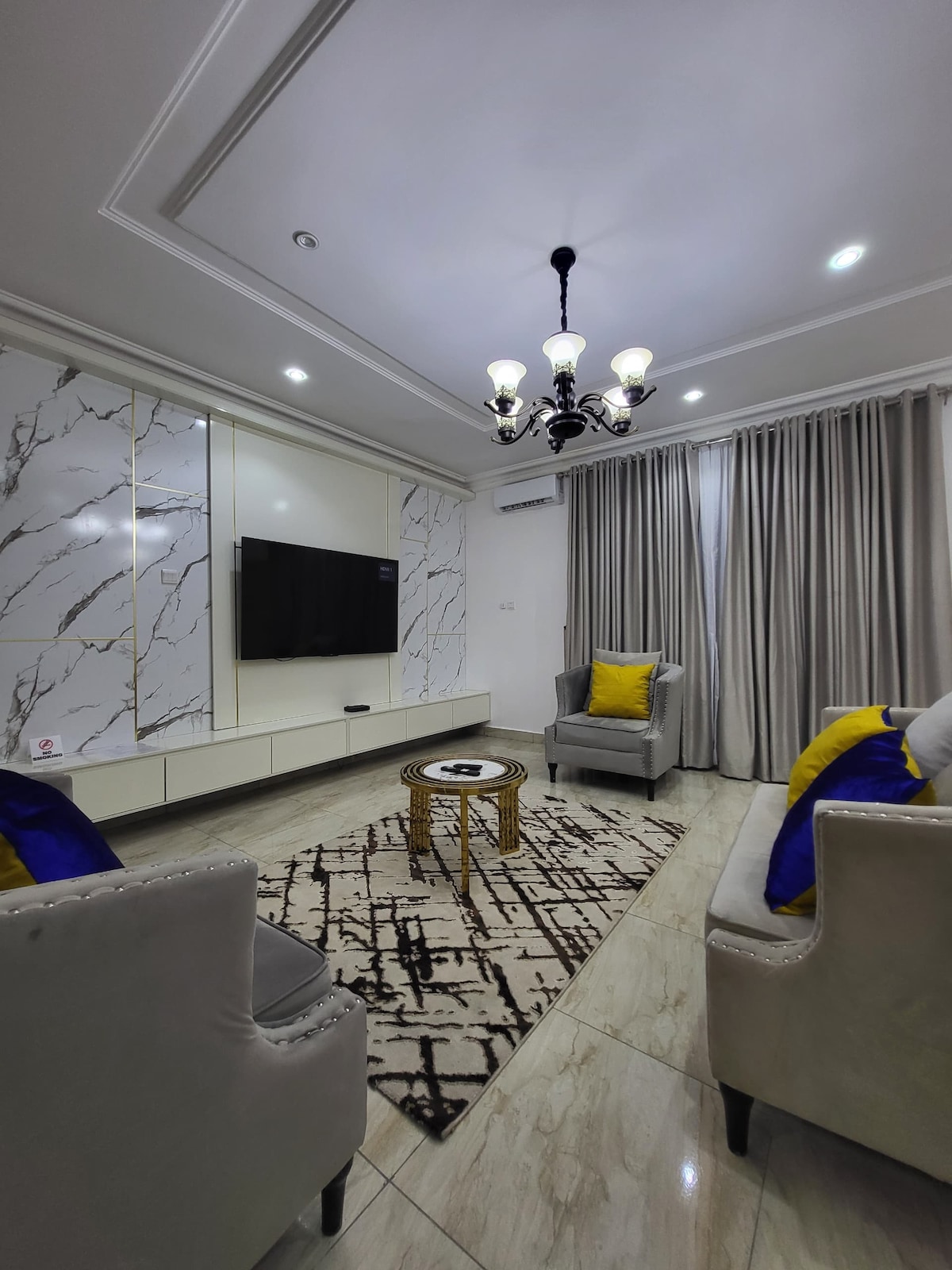 Deur met code Eigen Balkons Wasmachine Gezellige 3 slaapkamers 5 airconditioners Eigen werkplek Gemeubileerde woonkamer Volledig uitgeruste keuken 4 toiletten en 3 badkamers Starlink en glasvezel wifi 24/7 licht (zonne-energie | Omvormer | Gen) If No Power Grid: Gen: 06am-8am,6pm-12am but inverter always on. Nabij markten, nachtclubs, restaurants en winkels Schoon en fris beddengoed en handdoeken Serene, veilige en prachtige buurt 85 inch, 65 inch, 50 inch, 50 inch smart-tv (Prime, Netflix)
