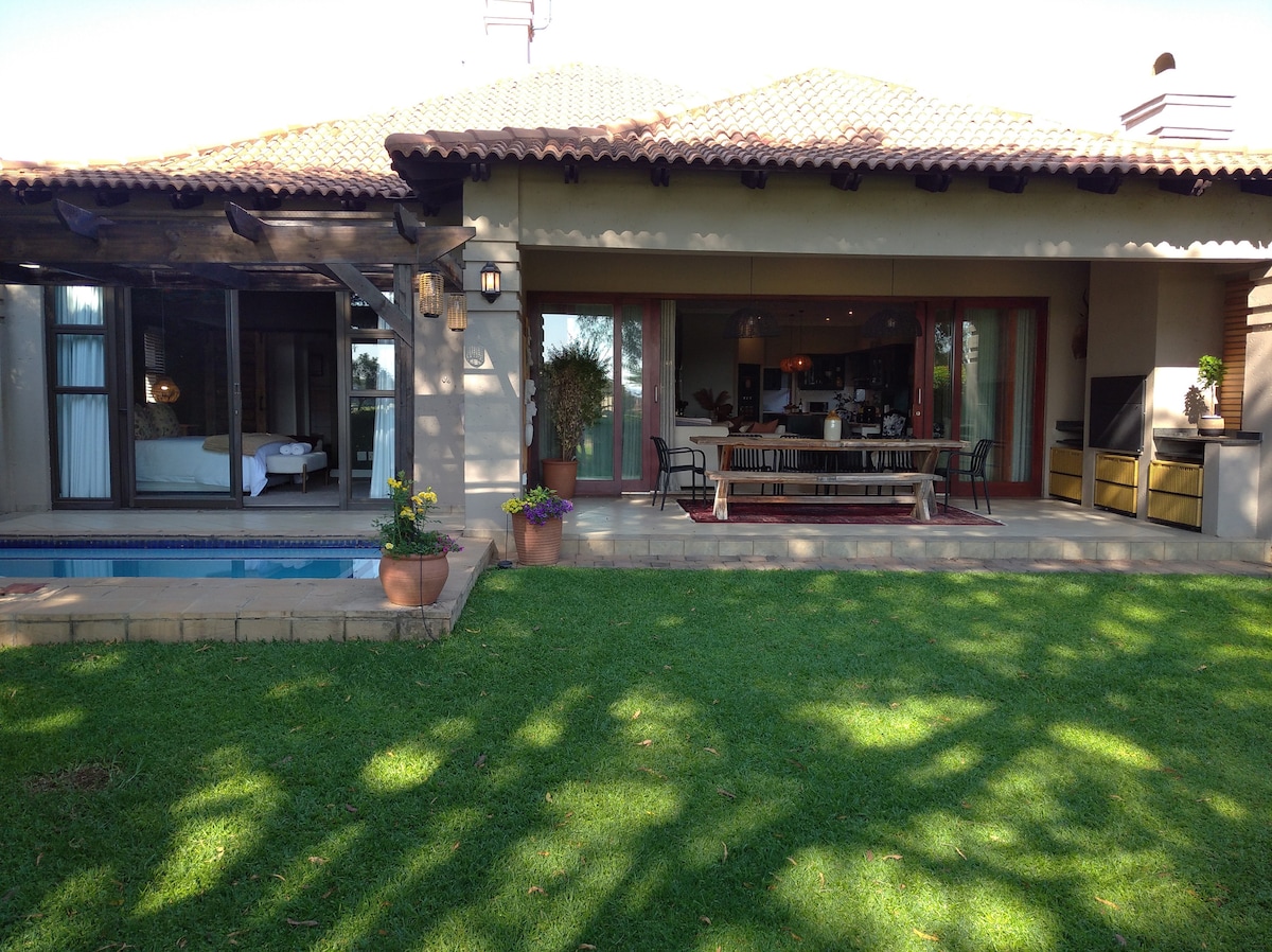 Geniet van een onlangs gerenoveerde en zeer stijlvolle ruimte op een uitstekende golfbaan in het centrum van Centurion. Een rustige omgeving met uitzicht op de Hennops rivier en de 7e green. Gunstig gelegen tussen Johannesburg en Pretoria op 4 km van de Gautrain. De Mall of Africa, Centurion Mall en Menlyn Mall zijn vlakbij. Uber is hier overvloedig aanwezig. Veel centra, winkels, restaurants en pubs met topbeoordelingen in de buurt. Geweldig uitzicht, braai-faciliteiten, fiets- en loopgebieden. Vriendelijke verhuurders! Volledige back-up stroom en water