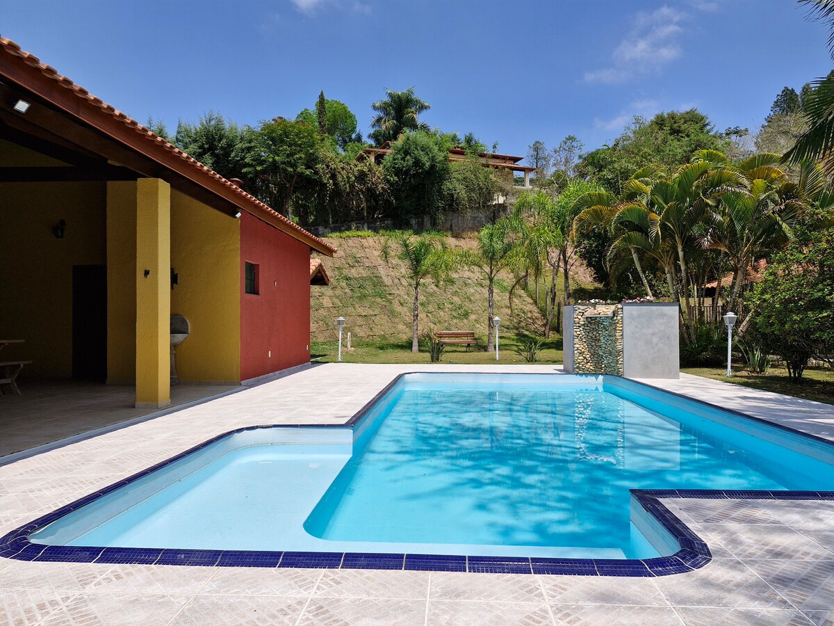 Onze Chacara is ideaal voor gezinnen met kinderen! We hebben een fantastische kinderruimte, een zwembad met zonneverwarming en een droge sauna* Onze Oled-tv biedt toegang tot Netflix-films en -series, glasvezel-wifi met 1 Giga-snelheid. De toegangspoort is automatisch. Je kunt genieten van de pizzaoven, houtkachel, barbecue, pooltafel en pingpong en trampoline. 60 minuten van de hoofdstad São Paulo, São Paulo.