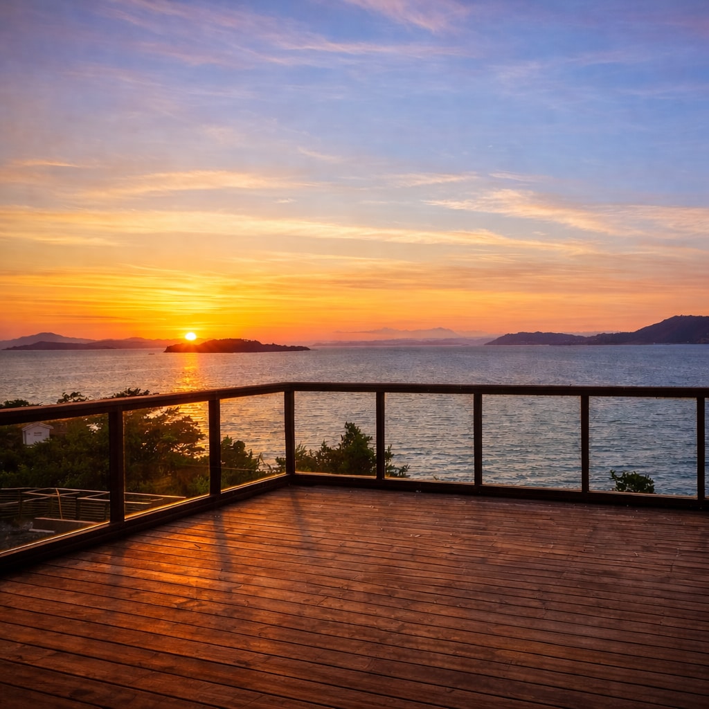 Appartement aan zee. Terras, tuin en aanlegsteiger