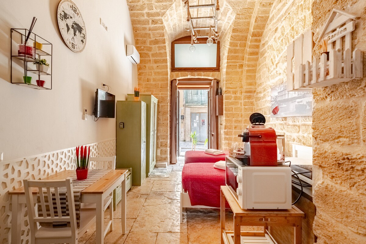 Geheel huis, typisch voor Bari Vecchia, met radiatoren, airconditioning en zelf inchecken voor onafhankelijke toegang op elk gewenst moment. Uitchecken 13.00 uur 4 verdiepingen: toegankelijk vanuit een leefruimte met keuken. Op de 1e verdieping is er een woonkamer met een eettafel, een tv en een bank (bed) en de grote badkamer. Op de 1e verdieping zijn er een kleine badkamer en 2 slaapkamers: een tweepersoonsbed, een met 2 eenpersoonsbedden Op de 3e verdieping wasruimte, keuken en een terras met uitzicht boven de daken recht in de zee