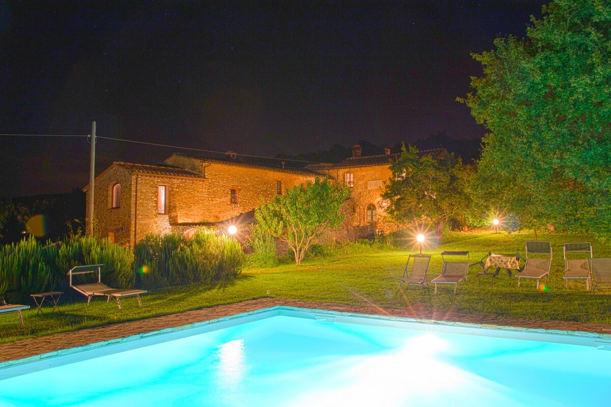 Dit mooie appartement maakt deel uit van onze oude boerderij uit de XVI eeuw en bestaat uit: 1 slaapkamer (tweepersoonsbedden of twee eenpersoonsbedden), 1 badkamer, 1 grote woonkamer met keuken en een buitenwoonkamer die alleen voor jou is gereserveerd. Geniet van het zwembad en het prachtige uitzicht op het Sienese platteland. Profiteer van al onze services: ontbijt, typisch diner, kookles, picknicken en meer ... Siena ligt op slechts 15 minuten rijden!