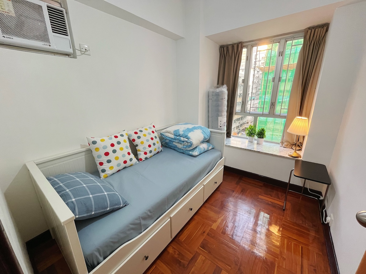 Ons appartement heeft 3 slaapkamers ,een woonkamer en 1 badkamer, elke kamer heeft een tweepersoonsbed dat geschikt is voor elk 2 personen. De woonkamer heeft 1 slaapbank (tweepersoonsbedgrootte) waar in totaal maximaal 8 personen kunnen verblijven. Ons appartement is gelegen in 6/F met lift, fijn ingericht met volledig meubilair. Ons gebouw ligt op minder dan vijf minuten lopen van mtr en A21 luchthaven bushalte