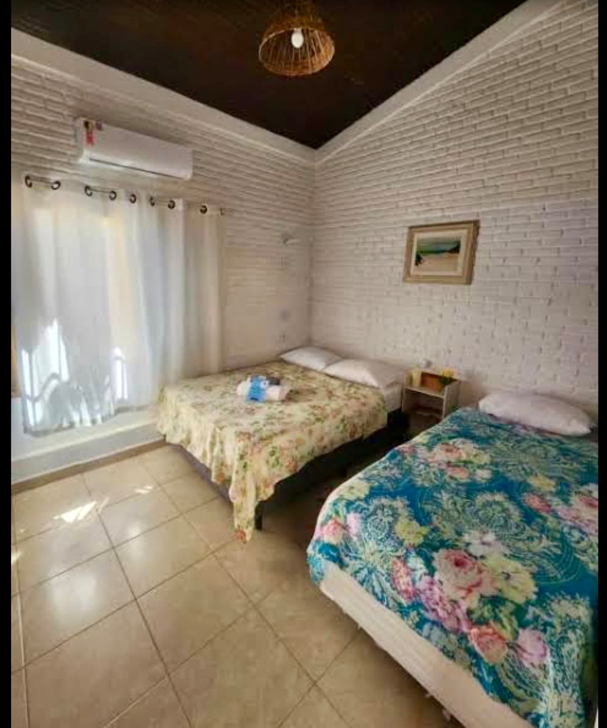 Oubliez vos soucis dans ce logement spacieux et serein, à l aire rustique, confortable et pratique . À 5 minutes à pied de la plage de Guaiúba, maison spacieuse avec quatre suites, indépendantes , longé par une terrasse couverte qui rejoint un ample salon. Un endroit convivial pour être entre copains ou famille. La plage de Guaiúba se situe entre deux belles vallées avec une mer calme, idéal pour les enfants. À quelques kilomètres du centre-ville. Possibilité de late check out.