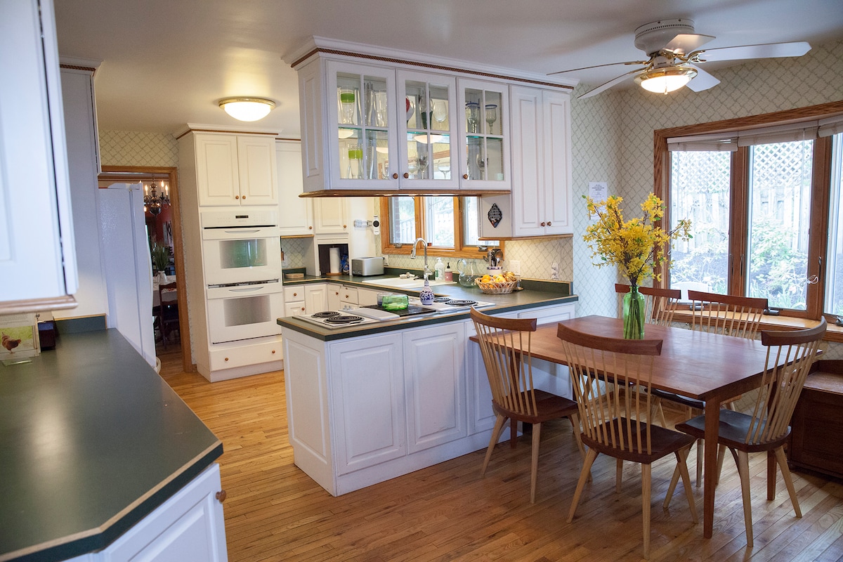 Dit unieke pension met twee verdiepingen heeft een geheel eigen stijl. De Loft heeft een slaapkamer boven, samen met een geweldige werkruimte met uitstekende WIFI, een grote badkamer en kast en een kleine kitchenette met magnetron, koelkast, friteuse en Keurig. Kamer verduisteringsgordijnen, AC, TV w/Roku, volledig bad/doucheunit, uittrekbare bank en queen size bed alles in een zeer grote en open plattegrond! De eerste verdieping is ingericht als fitnessruimte/trainingsruimte. Ruime en gemakkelijke parkeergelegenheid. Gebruik van het buitenterras. Alleen volwassenen.
