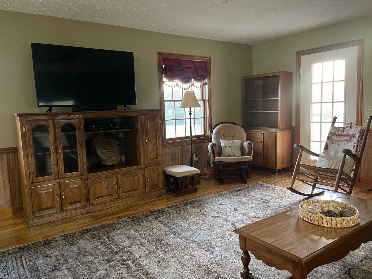 Deze schattige boerderij is voor diegenen die op zoek zijn naar een rustige plek om de stekker uit het stopcontact te halen en te verjongen op een prachtige boerderij in Zuid-Kentucky. Vanaf de schommel op de veranda is er een prachtig uitzicht op de boerderij. Dit is de perfecte plek om te genieten van het geluid van krekels en het sterrenlicht. Een ideaal toevluchtsoord voor gezinnen, individuen, koppels of vrienden. We kijken ernaar uit om onze hoek van de wereld met jullie te delen. *Dit is een werkende boerderij, dus wees voorzichtig met dieren en verhuisuitrusting.*