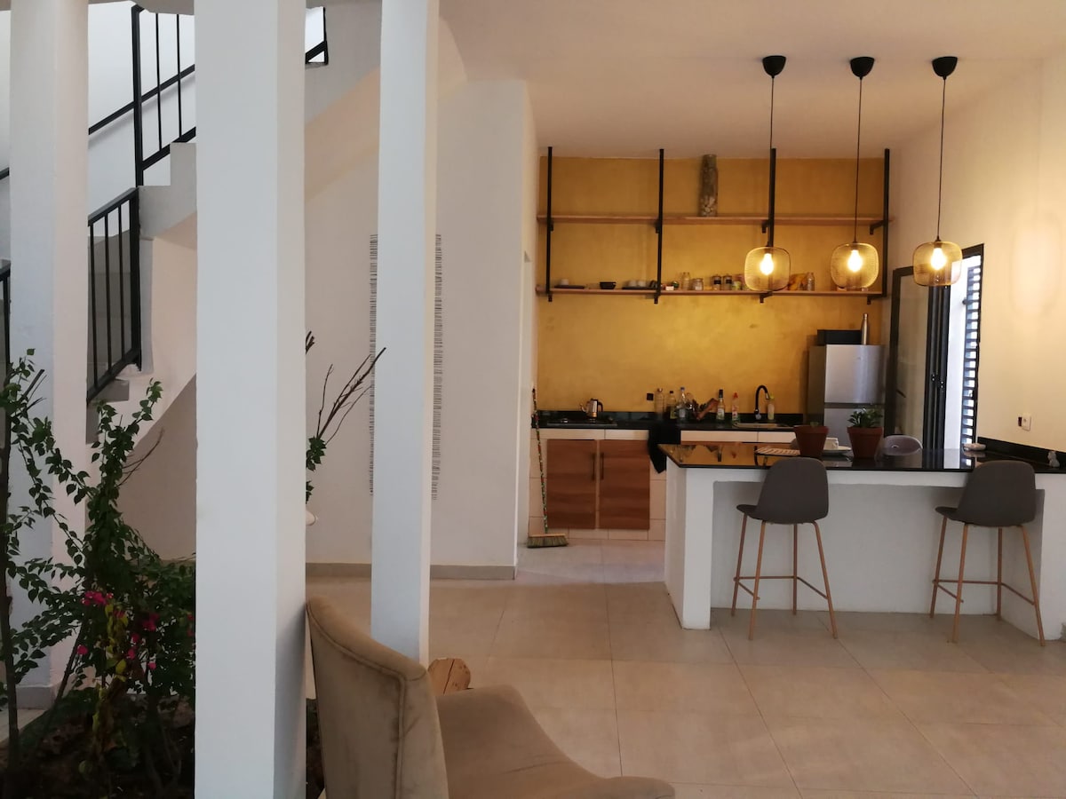 Welkom bij Kepar, een eigentijds huis met een schone stijl, ideaal voor een rustig verblijf weg van de drukte van de stad. Word wakker met het geluid van de golven en vogelgezang, geniet van de zeebries en een rustgevende natuurlijke omgeving. Een gewilde plek voor surf- of vissportliefhebbers. Op minder dan een uur afstand ontdek je de levendige sfeer van Dakar en Saly voor je culturele uitstapjes. Een perfecte plek om je batterijen op te laden voor gezinnen of vriendengroepen.