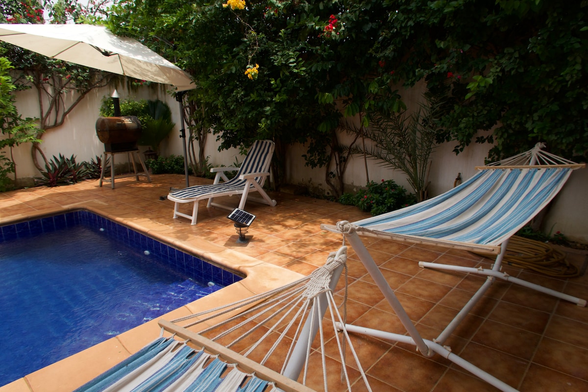 Ontspan in deze rustige en stijlvolle ruimte, privézwembad, warm water, Airconditioning In het centrum van Thies , 20 minuten van de luchthaven van Senegal. Woonkamer, complete keuken en eetkamer, twee slaapkamers met grote bedden, Goed beveiligd, met terras. Europese stijl met Senegalese charme, Niet ver van Auchan, gemakkelijke taxi of persoonlijke auto. Mbour3: rustige omgeving, ideaal om rond Thies te reizen Huurders zijn vaak blij met mijn advertenties. Persoon ter plaatse voor informatie en maaltijden