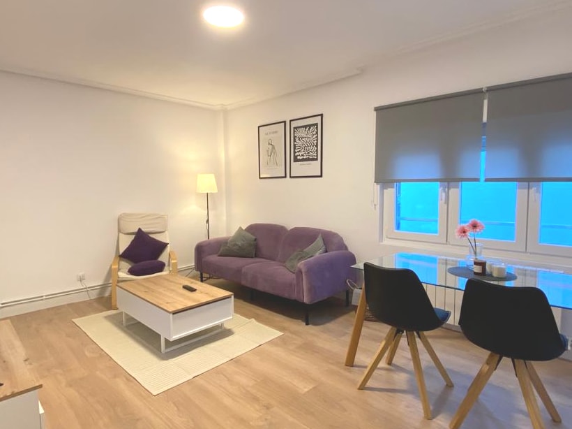 Super central apartment, two minutes from the bus station and five from the Ave train station. It's very bright and functional. Being centrally located near Salesas, El Corte Inglés, and Mercadona, you can walk all over the city and experience firsthand the atmosphere and all the beauty of Oviedo. The living room has a very comfortable sofa bed for one adult, with a €25 supplement for use as a bed. I want to offer you a charming, practical, and comfortable space. With Wi-Fi.