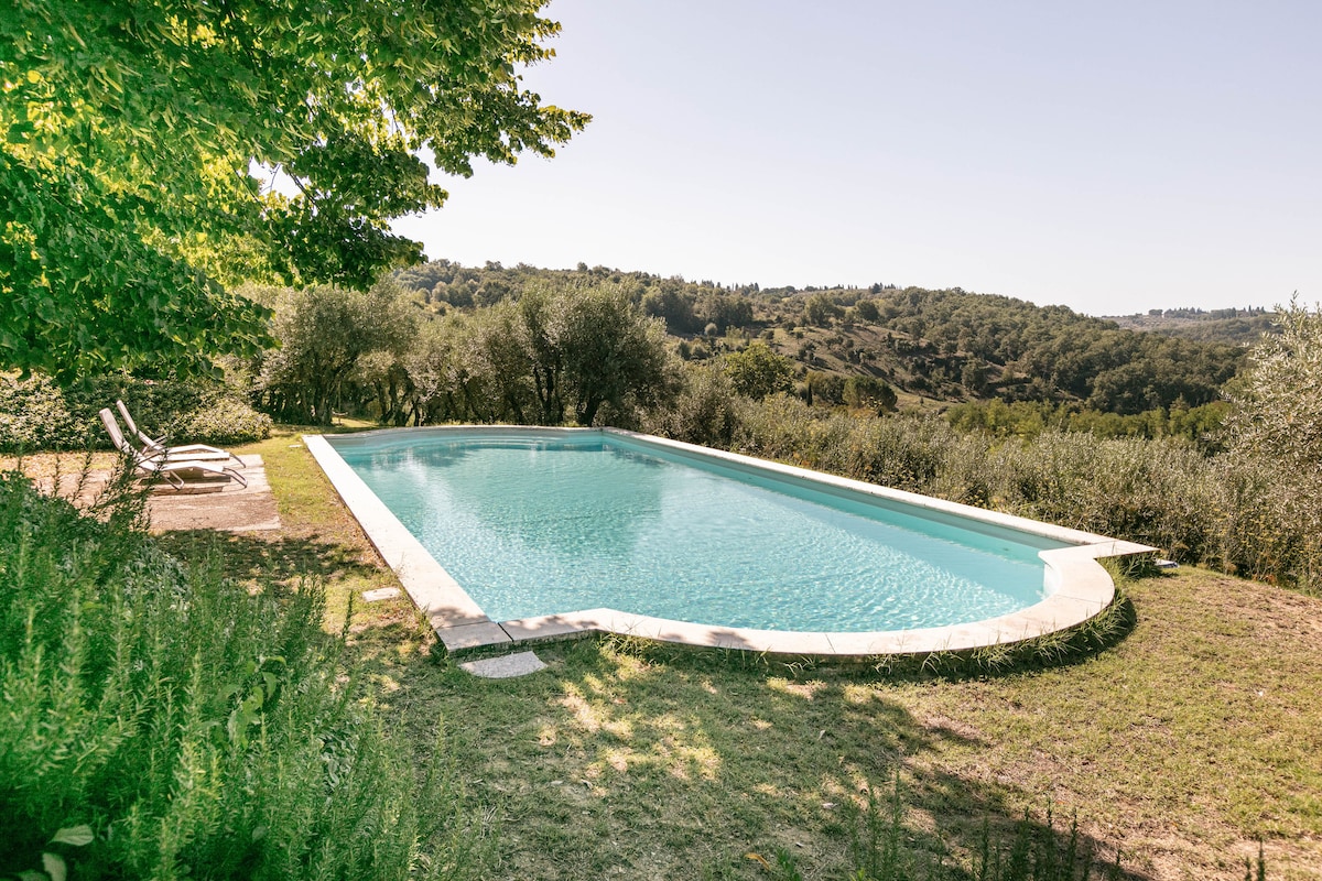 Wij zijn een boerderij op slechts 9 km van Florence in de prachtige Chianti-heuvels met een prachtig zwembad en gratis privéparkeergelegenheid Wij zijn een kleine biologische boerderij die onze eigen wijn produceert Chianti Classico en extra virgen olijfolie Slechts 1 uur rijden naar de belangrijkste stad van Toscane, zoals Pisa, Siena, San Gimignano, Pienza, Monteriggioni, Lucca en Arezzo. Openbaar vervoer naar Florence en Greve in Chianti (bushalte op slechts 200 meter van ons)