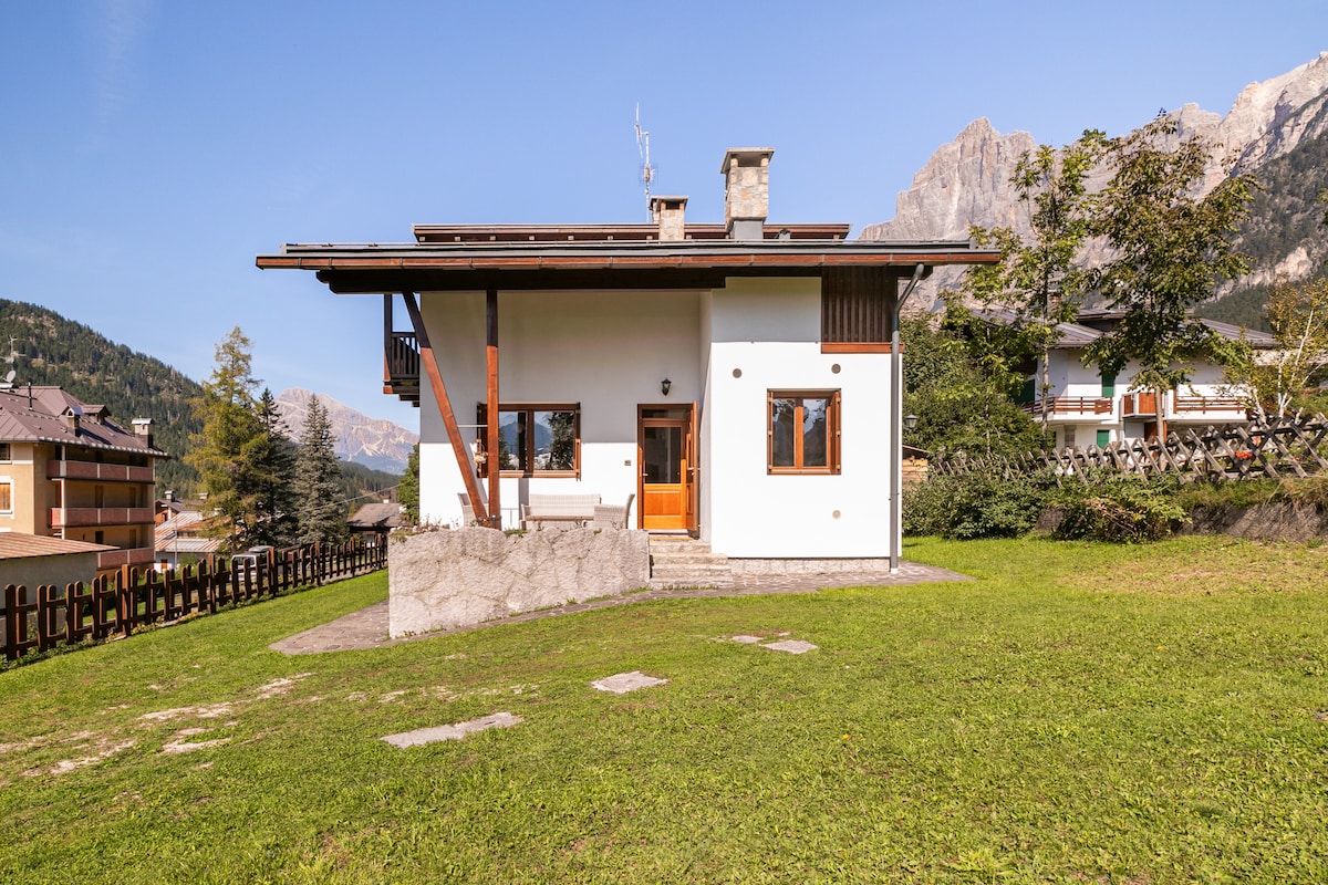 Detached house with private garden and parking, 10 minutes from Cortina. The house has two levels with panoramic views from the living room and bedrooms upstairs. It features two balconies on the upper floor and a terrace at the entrance. The bright and cozy living room comes with a smart TV equipped with Netflix for enjoyable evenings. There are two full bathrooms, one on each floor. The kitchen, though compact, is fully equipped with essentials.