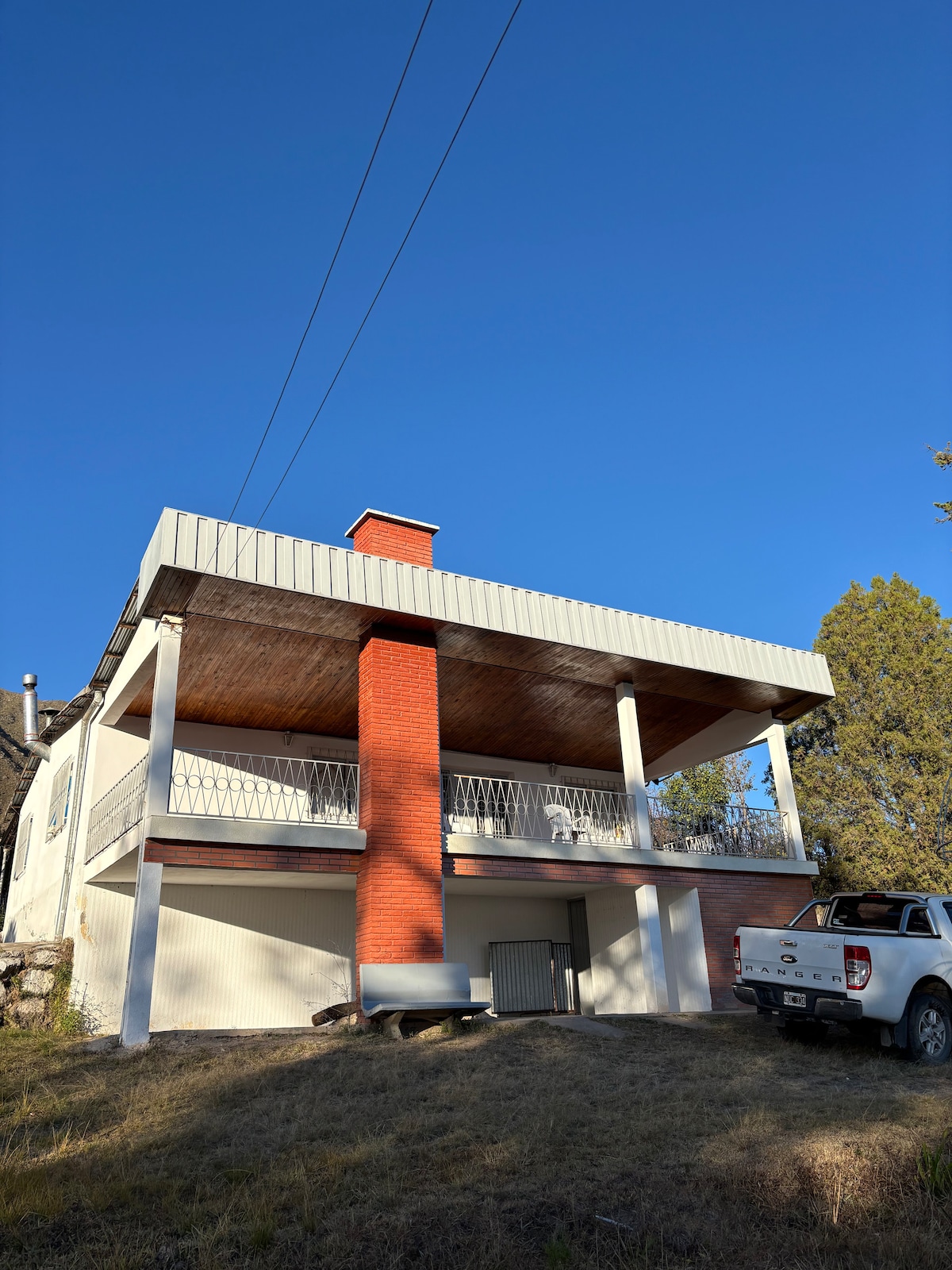 Ubicada en la tranquilidad de Casas Viejas, es una casa de campo cálida y familiar. Los techos de madera y el gran jardín le dan ese aire de montaña que buscamos para desconectar. La casa se vive mucho afuera gracias a que tiene espacios techados tanto al frente como al fondo, ideales para que cada uno encuentre su rincón para tomar mates, comer o charlar mirando el paisaje protegidos del sol.