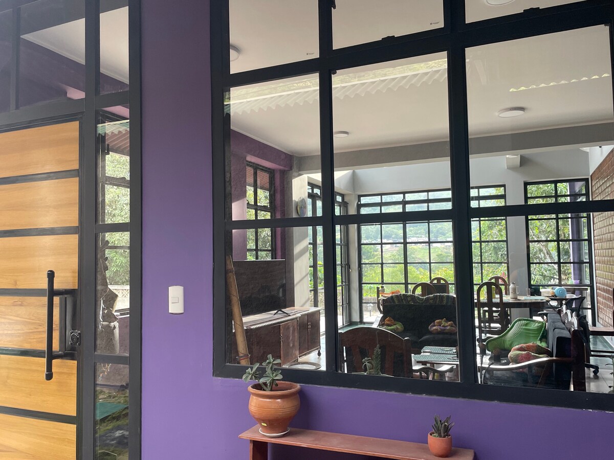 Huis, 180 m, 2 verdiepingen, terras; woonkamer, eetkamer en grote keuken, omgeven door tuinen, veel natuurlijk licht, goede wifi, halverwege de berg 0,8 km of 7 minuten van het plein, geplaveide weg en een andere landelijke weg naar Mirador la Cruz. Elke kamer heeft een eigen badkamer. Je zult de biodiversiteit van de omgeving kunnen waarderen, JE WORDT WAKKER MET HET LIED VAN DE VOGELS EN HET FRISSE AROMA VAN DE TROPISCHE PLANTEN, La Merced heeft watervallen, rivieren, dieren, vlindertuin. We hebben een garage.