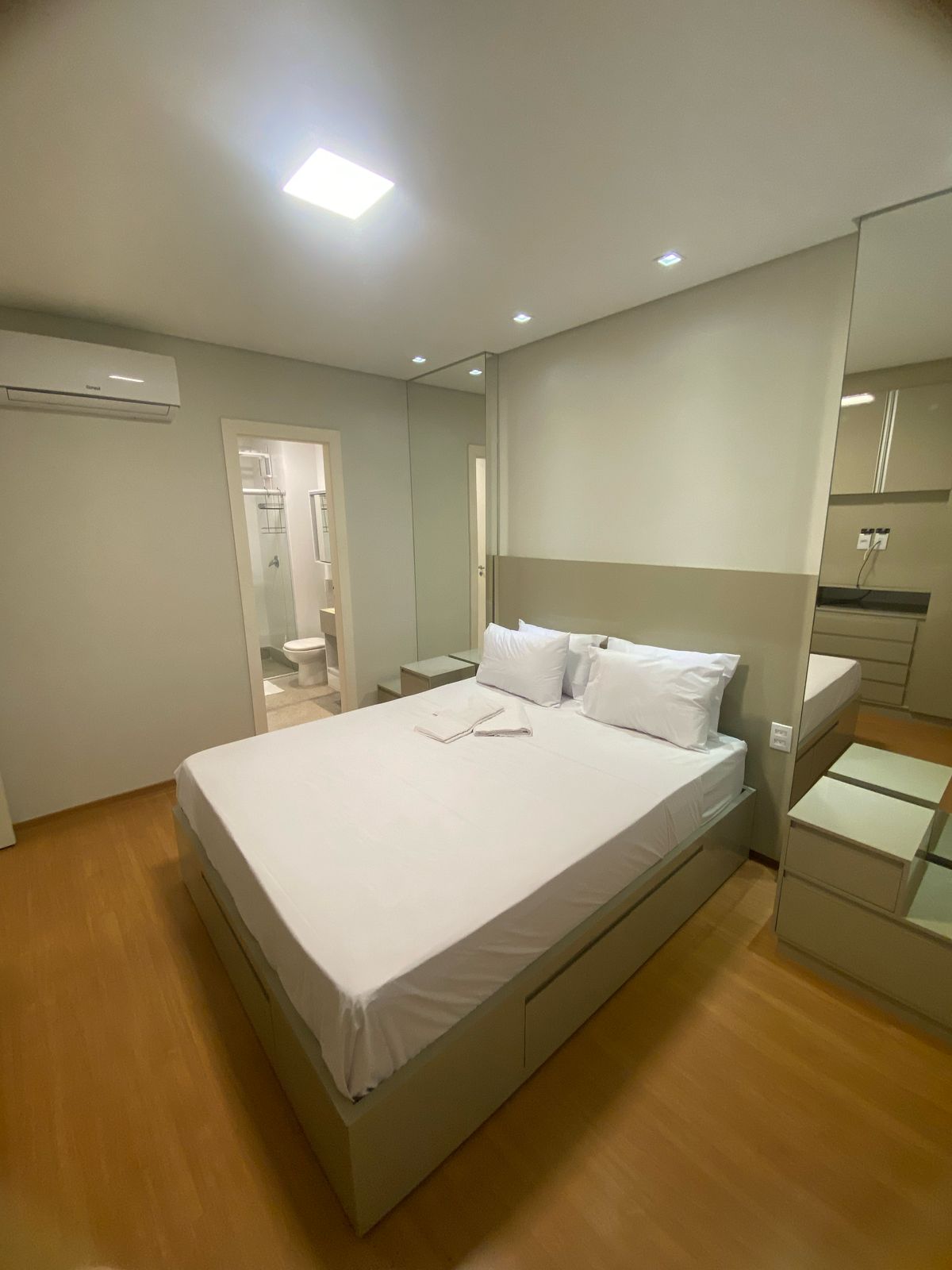 Requinte, elegância e conforto para seu descanso e privacidade. Tudo pensado para sua hospedagem com muito estilo. Perto do M Claros Shopping, perto do Hospital Universitário, perto de Supermercados e Padarias é perto dos melhores barzinhos e restaurantes da cidade. Um quarto com Cama de Casal Queen e na sala Sofá Cama que se transforma em cama de casal tamanho padrão, porém confortável! Nosso apto é ótimo, possui itens de bomboniere e bebidas a venda. Não possuímos garagem.