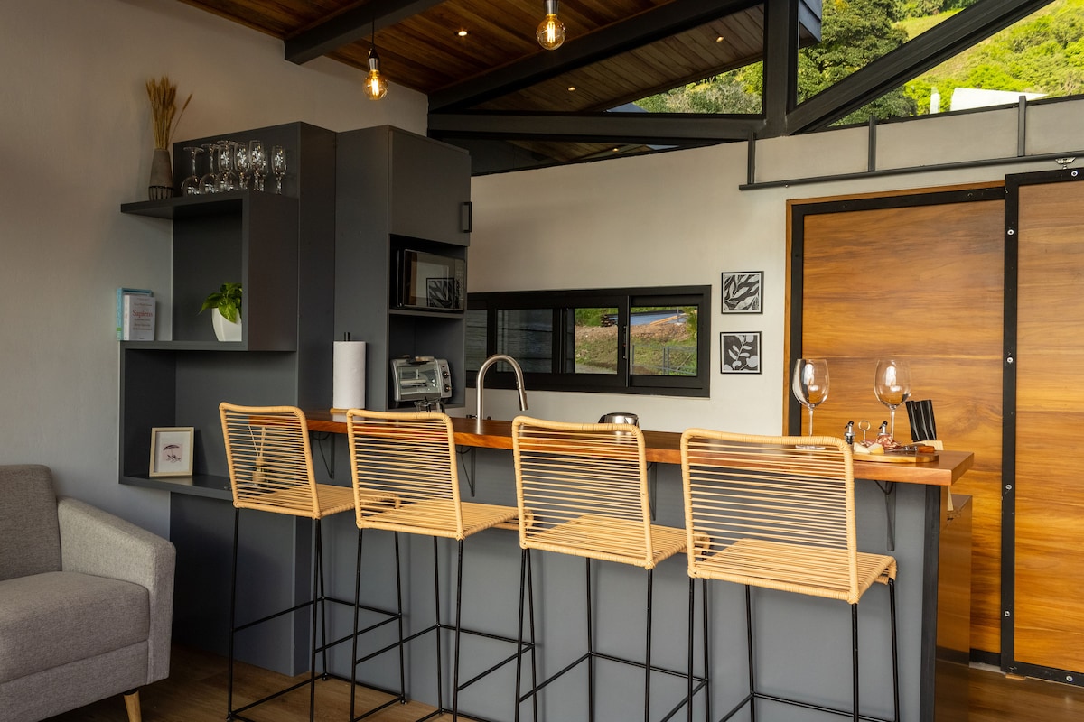 Word wakker in een opvallende A-vormige villa die boven de bosbodem zweeft, waar modern design en de rust van de bergen samenkomen. Dit door architecten ontworpen huis in Sukha Monteverde ligt verscholen in het weelderige bladerdak van Santa Elena in Monteverde en biedt de perfecte combinatie van comfort, stijl en nabijheid van de beste attracties in het nevelwoud van Costa Rica Als je op zoek bent naar avontuur, romantiek of rust, dan biedt deze elegante A-frame hut een onvergetelijke ervaring in een van de meest biodiverse gebieden op aarde