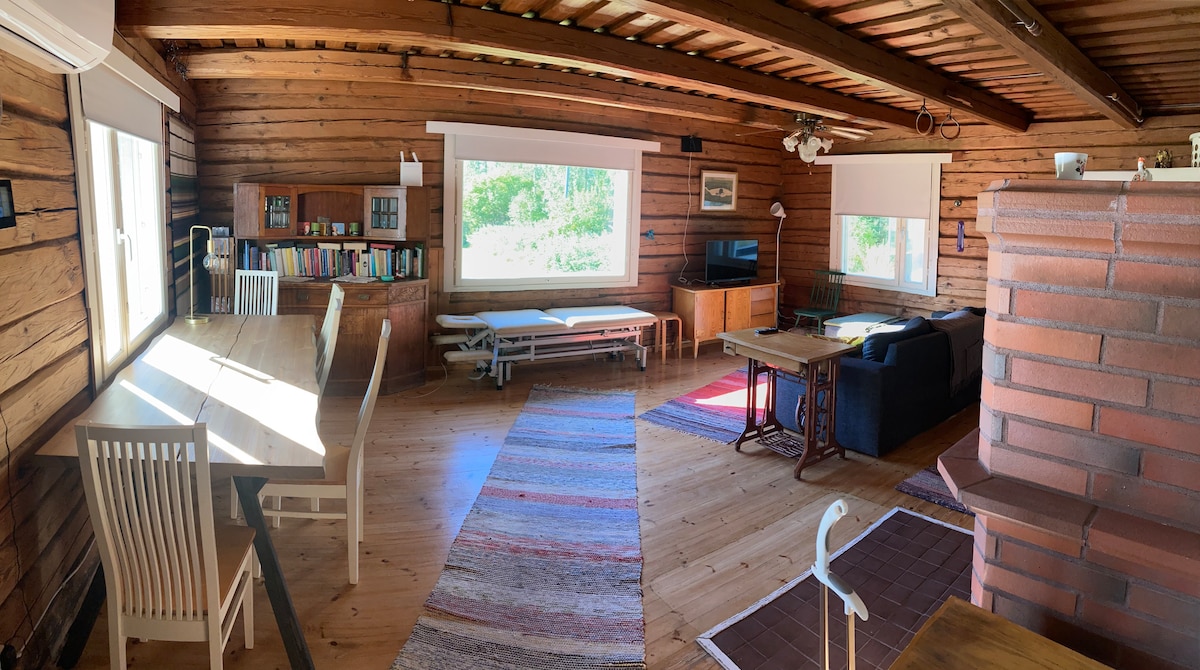 Pikkumökki-cottage is een gezellig, traditioneel houten huisje met een prachtig uitzicht over het meer Saimaa. Het huisje heeft een open gemeenschappelijke ruimte (woonkamer en kitchenette) en een slaaphoek. Sauna bevindt zich in hetzelfde gebouw met een eigen ingang. Er is geen douche, maar je wast jezelf met een verfrissend meerwater. Er is geen watertoilet, maar traditioneel droog ecotoilet in een apart gebouw. Een groot terras en een grill voor barbecue. Er is een kleine bungalow naast het huisje, met bedden voor twee.