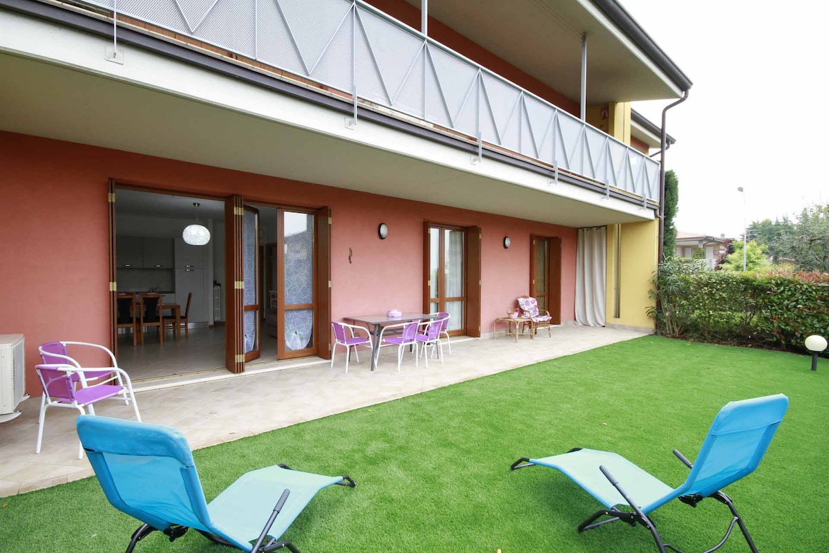 Appartement op de begane grond NIET GESCHIKT VOOR BABY 'S; onlangs gerenoveerd en op slechts enkele stappen van het meer, handig voor de stranden, historische centra van Desenzano en Sirmione en op 3 km van de Terme di Virgilio. Met een grote garage, het privéterras en een klein zilver met de privétuin. Uitgerust met gratis wifi, airconditioning, verwarming en moderne keuken compleet met nieuwe apparaten. Toeristenbelasting: € 2,00 per persoon per nacht (vrijgesteld jonger dan 14 jaar) ter plaatse te voldoen.