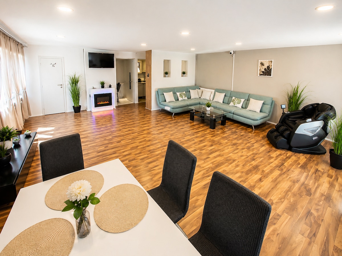 Moderne kunst, designvilla, 180m2, dicht bij Lake Alte Donau, mooi om te wandelen, rond te zwemmen en te ontspannen. In 15 minuten ben je met ondergrondse U1 bij St. Stephan Cathedral (City Center). Het huis is gemakkelijk te bereiken, met de luchthavenbus, naar Kagran (3 minuten lopen). Grote keuken en woonkamer met groot terras. Zwembad om in te zwemmen;-) (Zwembadseizoen juni-september) 3 slaapkamers (2 tv's, Netflix en Prime), 3 werkplekken, 2 badkamers (1 douche, 1 bad) Geen verwarmd zwembad! Winkelcentrum 5 min te voet.