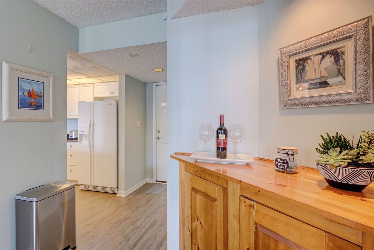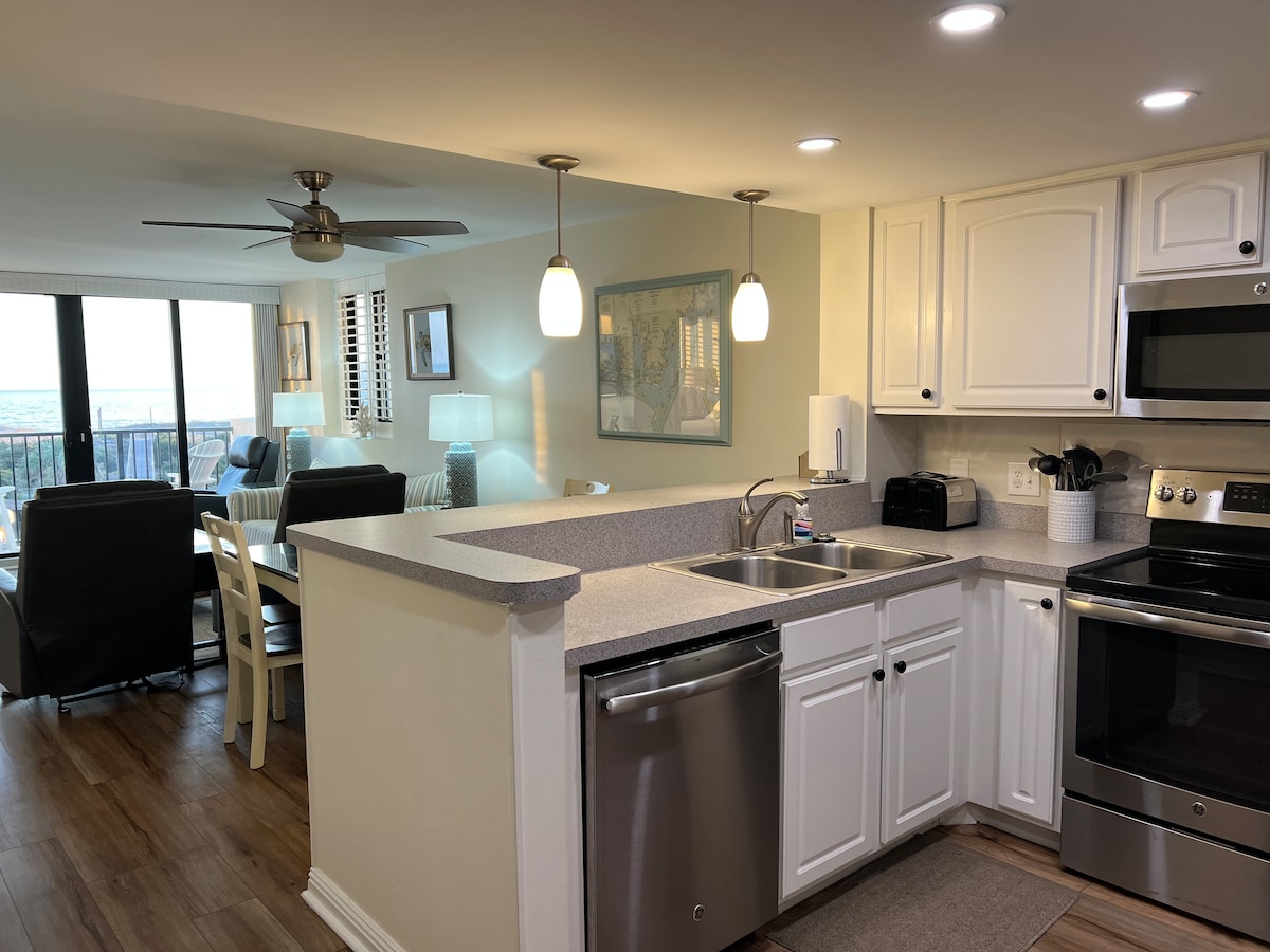 King Bedroom Suite Condo - Op loopafstand van het strand!! Handdoeken en beddengoed inbegrepen. Open concept met veel daglicht. Veel upgrades in de afgelopen jaren, maar de meest recente wijzigingen zijn een scheepslaap, waardoor de kamer gelaagd en gezellig aanvoelt, nieuwe koperen hangers en zellige achterwand. 1 slaapkamer met een kingsize bed en een queensize slaapbank in de woonkamer. Omheinde gemeenschap aan de oceaan met 2 buitenzwembaden en verwarmd binnenzwembad, tennisbanen, grills en fitnessruimte!