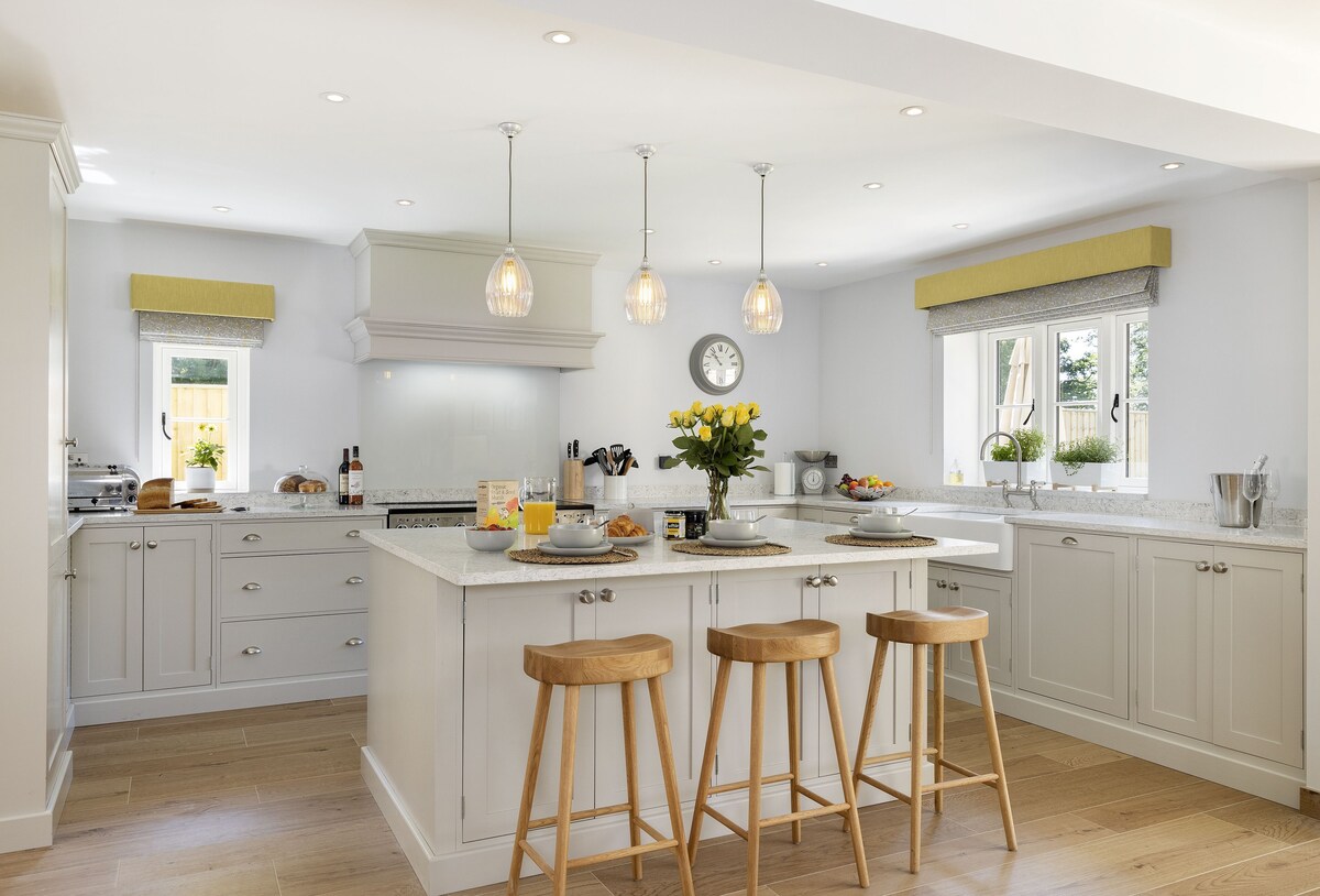 Een ontspannen uitstapje naar de Cotswolds voor lange lunches, wandelingen op het platteland en ontspannende duiken in het verwarmde zwembad. Perfect voor gezinnen en groepen. Op loopafstand van de pubs van Kingham en op slechts een klein eindje rijden van Daylesford. Ruime open woonkamer, veel daglicht. Enorme keuken, houtkachel, grote eethoek die uitkomt op de tuin/het terras om gezellig samen te komen. Luxe hoofdslaapkamer met eigen vrijstaand bad – drie andere slaapkamers, geschikt voor acht personen. Huisdiervriendelijke en omheinde tuin, veilig voor honden.