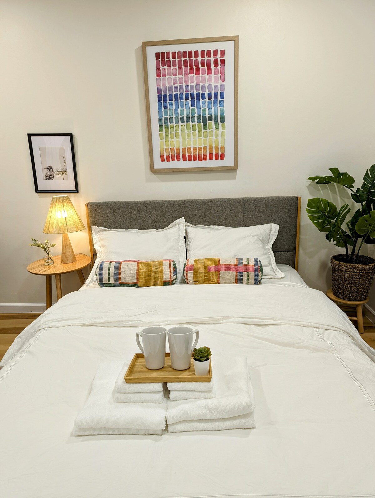 Deze privé, gezinsvriendelijke suite beschikt over een ruime woonkamer die uitkomt op een afgelegen patio met een vuurplaats en een eethoek in de buitenlucht - een ideaal toevluchtsoord voor een klein gezin of een stel dat rust en stilte zoekt tijdens een verblijf in de buurt van de stad. Binnen vind je een gezellige leefruimte met een queensize bed, een aangrenzende badkamer, een slaapbank, een tv, een bureau en een handige kitchenette met een koelkast, een magnetron en een koffiezetapparaat.