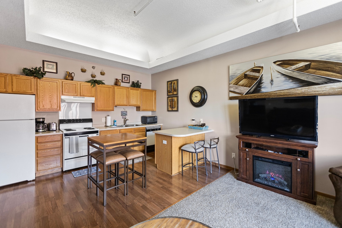 Retreat into nature, hike or bike the trails, enjoy the scenic views in the four season porch, and unwind during your nostalgic stay at Grandpa's Place. Grandpa's Place borders the 743-acre River Bend Nature Center. Spend your days exploring miles of trails, kayak the Straight River, enjoy a campfire under the stars, roast marshmallows and curl up on the couch by the fire in the four season porch.
