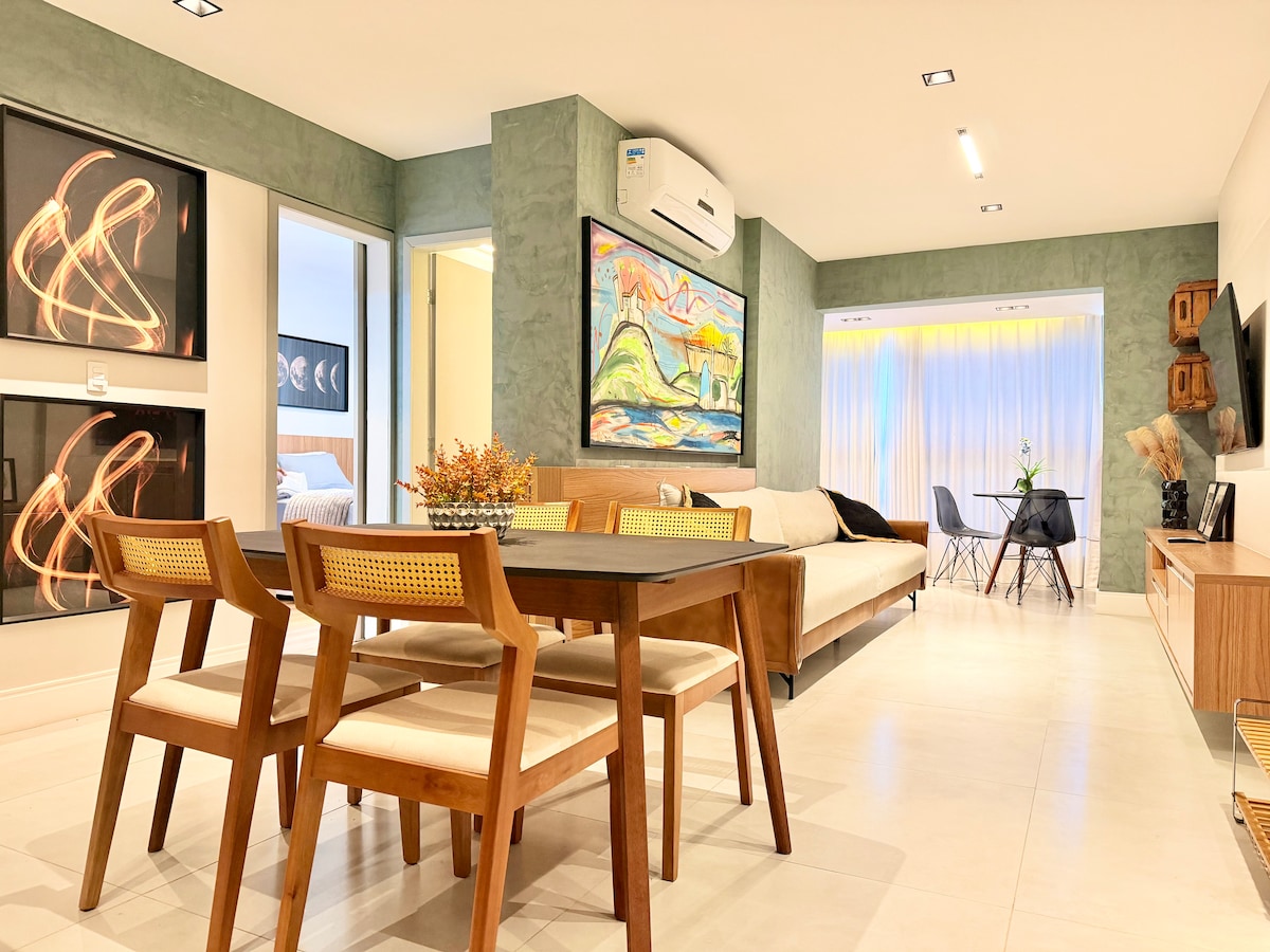Appartement met 3 slaapkamers (1 suite), aan het strand van Praia da Costa, op de beste locatie in Vila Velha. Het heeft een bakker, kruidenier, apotheek, ijssalon en restaurants vlakbij, evenals een kinderrecreatiegebied in het zand voor de kleintjes. Het ligt op de 9e verdieping en biedt gasten een bevoorrecht uitzicht op de hele kustlijn. Woning in porselein, met complete meubels, koelkast, fornuis, wasmachine, beddengoed en airconditioning in de drie slaapkamers en in de woonkamer, om het beste comfort te bieden.