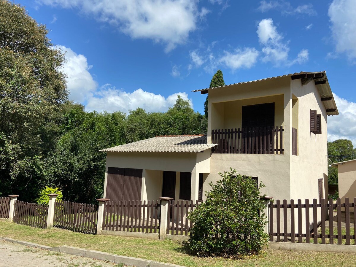 Relaxe com toda a família nesta acomodação tranquila. acasa traz conforto térmico para dormir, pois tem ar condicionado quente- frio. Muito espaço verde, possibilidade de plantar, pois temos canteiros... praça com areia para crincas, com banco de praça, escorregado e balanço em madeira.. pergolado e fogo de chão! fonte de água para pássaros!! E paz....