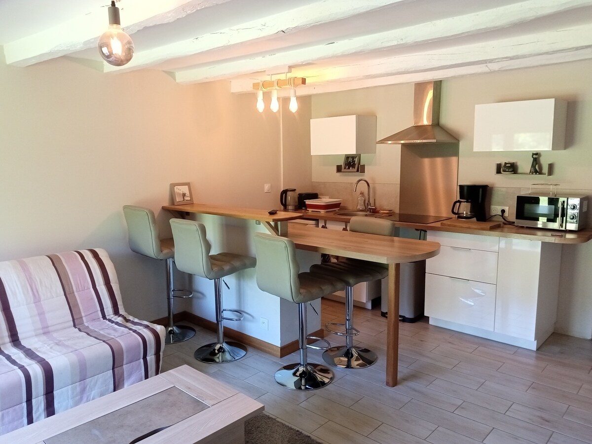 Gite Villard ligt in een zeer landelijke omgeving met uitzicht op het platteland. Het heeft een open keuken-eetkamer met loungeruimte, waaronder een driezitsbank en stoel, een eettafel van eikenhout met 4 stoelen, een eikenhouten dressoir, satelliet-tv - Frans en Engels, onbeperkt wifi, een elektrische radiator en een open haard. Alles wat je nodig hebt is in de keuken, thee, koffie, keukengerei, enz. Lakens en handdoeken zijn inbegrepen.