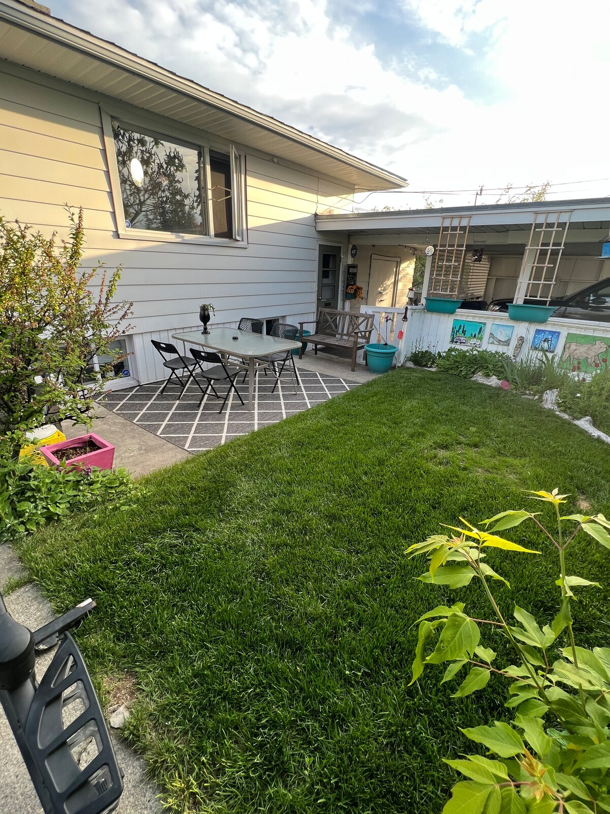 🏡 Geniet van het comfort van Cranbrook, BC in onze suite op de benedenverdieping met volledig uitgeruste keuken die uitkomt op een gezellige woonkamer met een gashaard en 55" tv met streamingdiensten. 🤗 Deze suite is geschikt voor maximaal 6 gasten met een queensize opklapbed in de woonkamer en twee slaapkamers met elk een nieuw queensize 10" memory foam bed en een 32" tv. 😎 Extra voorzieningen zijn een wasserette in de suite met wasmiddel, een gevulde badkamer met toiletartikelen in reisformaat en een omheinde privétuin voor een hond en parkeergelegenheid voor twee auto's. 🚙 🚗