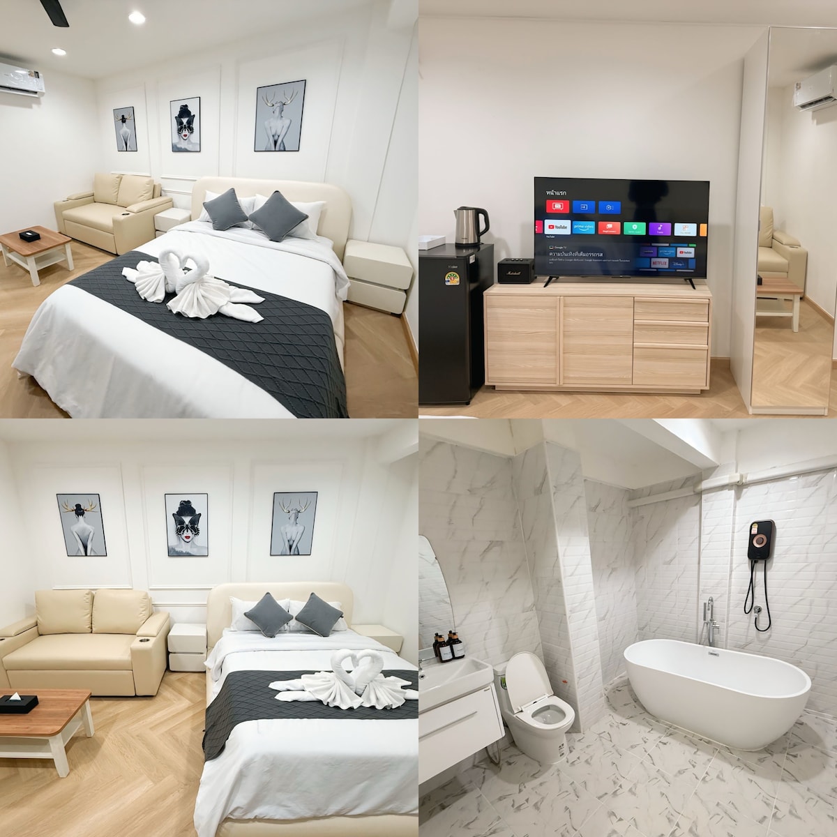 ห้องพักซันนี่ ชั้น 1 มีอ่างอาบน้ำ ห้องพักราคาประหยัด ตกแต่งสวยงาม น่าอยู่ ด้วยความตั้งใจ อยู่ใกล้แหล่งอำนวยความสะดวกมากมาย หน้าตึก มี 7-11 เปิด 24 ชม ห่าง จากรถไฟฟ้า ศรีด่าน 900 เมตร ห่าง จากรถไฟฟ้า แบริ่ง 5 กิโล ห่างจาก cj more 1.8 กิโลเมตร เตียงนุ่ม ห้องน้ำมีเครื่องทำน้ำอุ่น และมีอ่างน้ำทำน้ำอุ่น มีทีวี ตู้เย็น เครื่องไดร์ผม ผ้าขนหนู โซฟา ลำโฟง MARSHALL เน็ตเตอร์เน็ตความเร็วสูง กล้องวงจรปิดหน้าห้องทุกห้อง