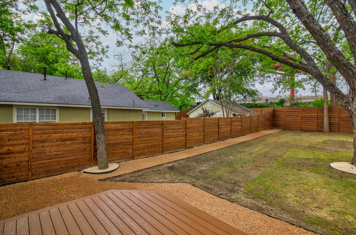 Welkom bij je gezellige basis in East Austin! De East Austin Zen Cottage — een gerenoveerd origineel uit 1939 met vintage houten vloeren, moderne apparaten, glasvezel-wifi en luxe matrassen. Slechts 1,5 mijl van UT en op enkele minuten van het centrum, taco's, brouwerijen, vintage winkels en livemuziek. Geniet van centrale verwarming/airconditioning, een werkruimte, parkeergelegenheid op het terrein en een eigen omheinde achtertuin — perfect voor stellen, solo-avonturiers of kleine groepen om te ontspannen, op afstand te werken of de creatieve East Side-sfeer van Austin op te snuiven.