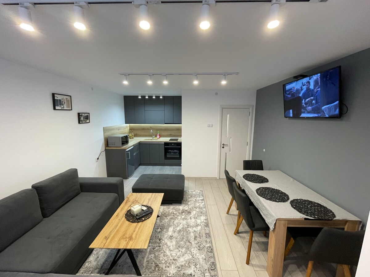 Дайте си почивка и се отпуснете в този спокоен, стилен и чисто нов апартамент където нашите гости ще се чувстват щастливи и комфортно. Добре дошли в новия ни апартамент! Нашето място е на последен пети етаж и предлага невероятна панорамна гледка и абсолютен комфорт за нашите гости.